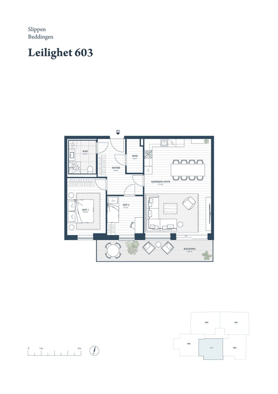 Leilighetene på Slippen har gjennomtenkte planløsninger og nesten alle vil se sjøen. Det leveres en gjennomgående god standard med bla. kjøkkeninnredning fra Drømmekjøkkenet, integrerte hvitevarer fra Siemens, balansert ventilasjon og lekre storformatfliser på baderommene.
