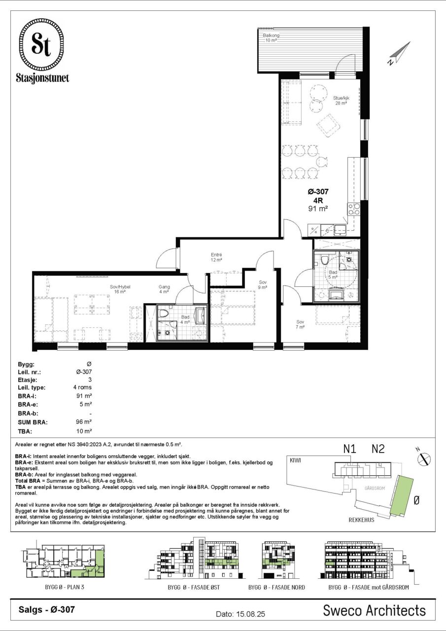 Stasjonstunet består av 68 moderne leiligheter og 5 rekkehus – et nytt nabolag som kombinerer bokvalitet, smarte løsninger og et variert boligtilbud. Leilighetene og rekkehusene i Stasjonstunet er utformet med fokus på bokvalitet, lys og funksjonelle planløsninger. De rene linjene og den harmoniske fargepaletten skaper et tidløst uttrykk, mens store vindusflater og private uteplasser gir en luftig og behagelig romfølelse. Materialene er valgt med omtanke – fra den lyse eikeparketten til de elegante flisene på badet – og de små detaljene vitner om solid håndverk og høy standard. Her får du moderne komfort med heis, fjernvarme og balansert ventilasjon, kombinert med energieffektive løsninger og bærekraftige valg. Nedgravde avfallssystemer og garasjeanlegg med elbil-infrastruktur gjør hverdagen enkel og ryddig.