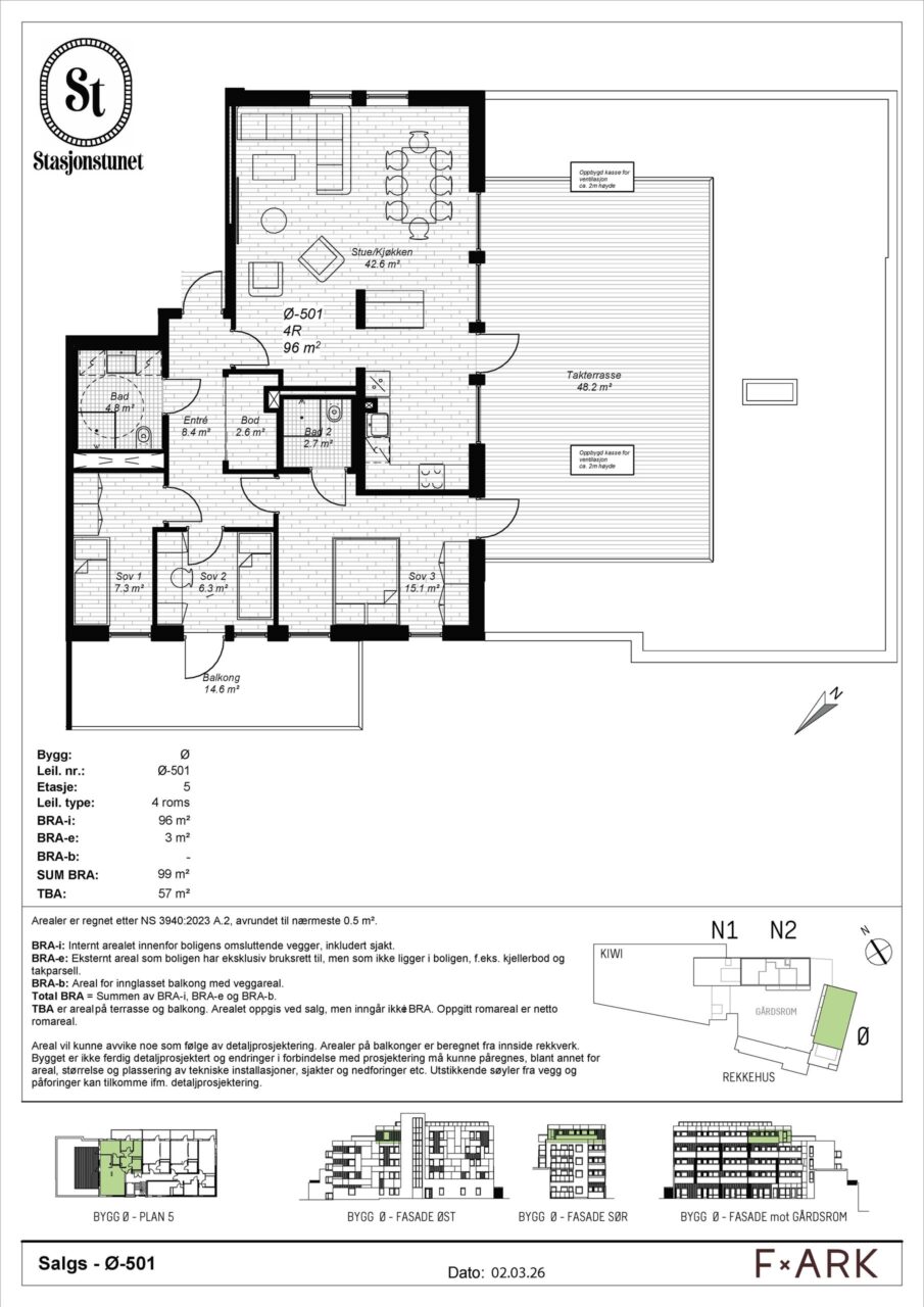 Stasjonstunet består av 68 moderne leiligheter og 5 rekkehus – et nytt nabolag som kombinerer bokvalitet, smarte løsninger og et variert boligtilbud. Leilighetene og rekkehusene i Stasjonstunet er utformet med fokus på bokvalitet, lys og funksjonelle planløsninger. De rene linjene og den harmoniske fargepaletten skaper et tidløst uttrykk, mens store vindusflater og private uteplasser gir en luftig og behagelig romfølelse. Materialene er valgt med omtanke – fra den lyse eikeparketten til de elegante flisene på badet – og de små detaljene vitner om solid håndverk og høy standard. Her får du moderne komfort med heis, fjernvarme og balansert ventilasjon, kombinert med energieffektive løsninger og bærekraftige valg. Nedgravde avfallssystemer og garasjeanlegg med elbil-infrastruktur gjør hverdagen enkel og ryddig.
