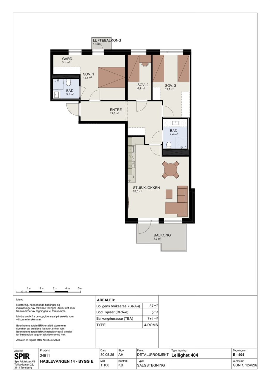 Det leveres ikke garderobeskap eller klesskap, men det er avsatt plass til garderobe som vist på salgstegning og garderobeskap kan bestilles som tilvalg. Avsatt plass til garderober/skap på tegning kan variere i dybde og kan være mindre enn 600 mm.