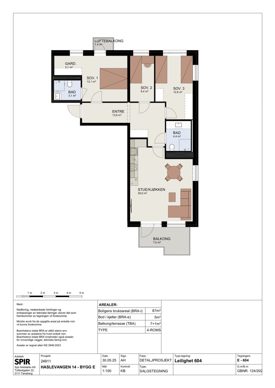 Det leveres ikke garderobeskap eller klesskap, men det er avsatt plass til garderobe som vist på salgstegning og garderobeskap kan bestilles som tilvalg. Avsatt plass til garderober/skap på tegning kan variere i dybde og kan være mindre enn 600 mm.