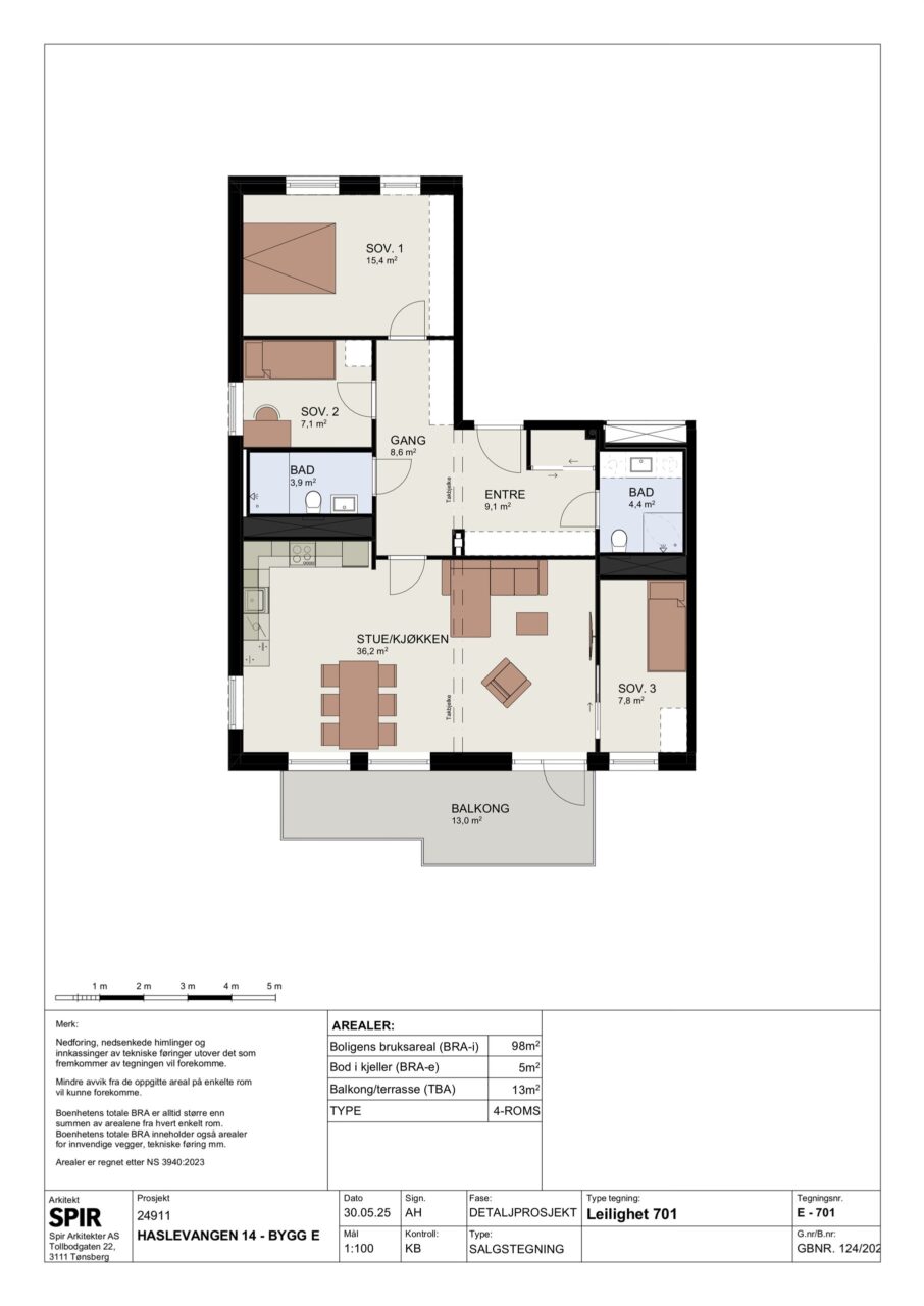 Det leveres ikke garderobeskap eller klesskap, men det er avsatt plass til garderobe som vist på salgstegning og garderobeskap kan bestilles som tilvalg. Avsatt plass til garderober/skap på tegning kan variere i dybde og kan være mindre enn 600 mm.