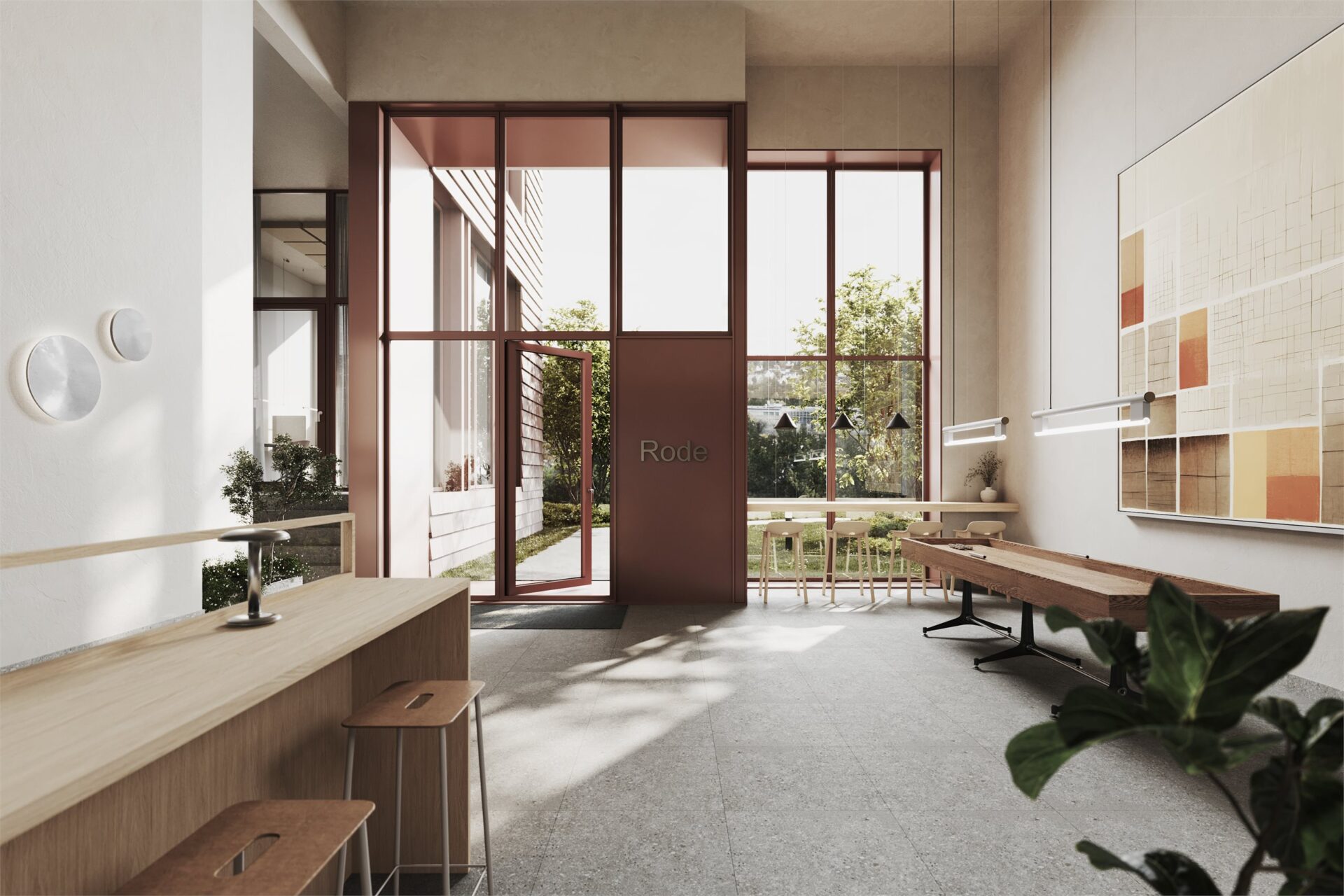 Poulssons Kvarter tilbyr et mangfold av fellesfasiliteter for å skape et levende og sosialt nabolag. Det luftige inngangspartiet er ikke bare en port til hjemmet ditt, men også et naturlig samlingspunkt for naboene, med shuffleboard og koselige sitteplasser for avslappede samtaler og hyggelige øyeblikk.