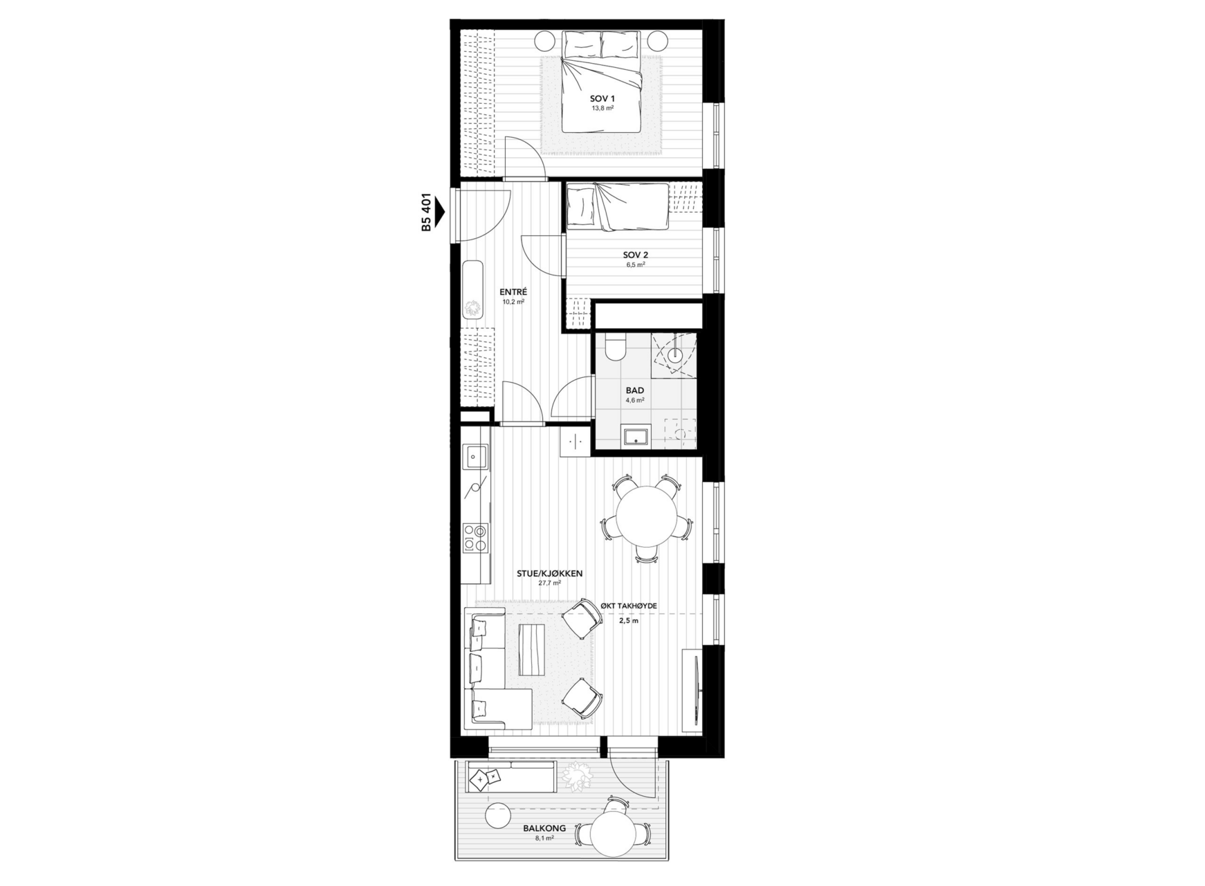 Prosjektet byr på en rekke kvaliteter både med tanke på materialitet, arkitektur, inngangspartier og fellesfunksjoner, men også gjennomarbeidede planløsninger og gode kvaliteter i leilighetene. Her vil du finne deg en leilighet om du er førstegangskjøper, barnefamilie, eller flytter fra hus til leilighet.