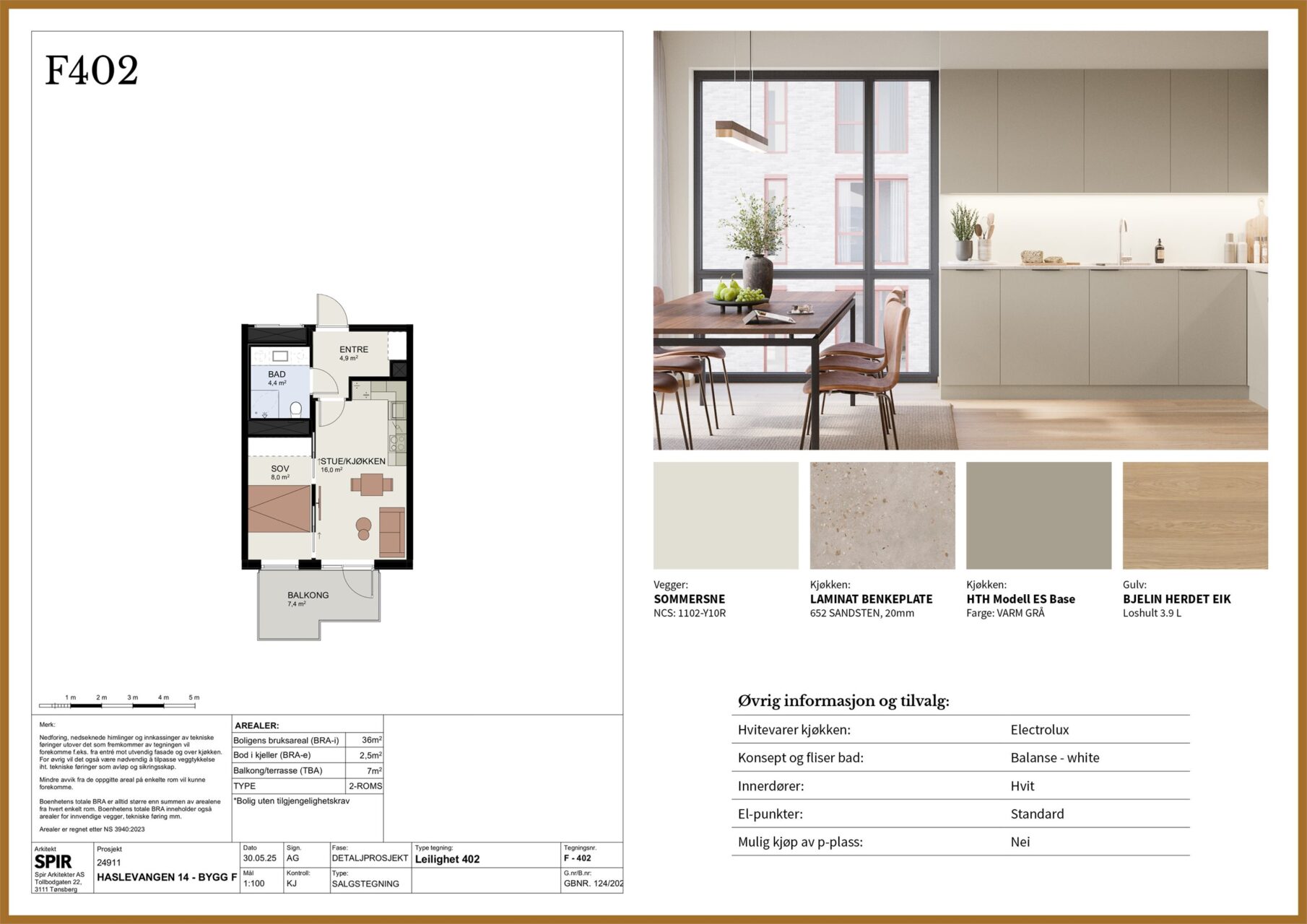 Prosjektet har godkjent rammetillatelse datert 29.02.2024. Det prosjekteres og bygges i henhold til Byggeteknisk forskrift TEK17. Selger har ansvaret for at det foreligger midlertidig brukstillatelse eller ferdigattest på leiligheten senest ved kjøpers overtakelse av leiligheten.