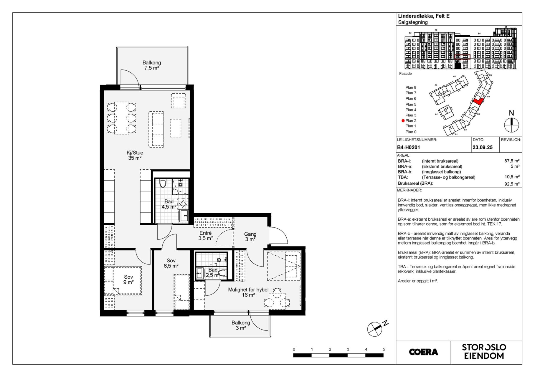 Fra 1. januar 2024 trådte en ny arealstandard i kraft “Areal og Volumberegninger for bygninger” som ble publisert av Norsk Standard 26.10.23. De nye arealbegrepene oppgis som ulike former for BRA, som forklart under. Arealene er oppgitt i hele tall iht. avrundingsregler: