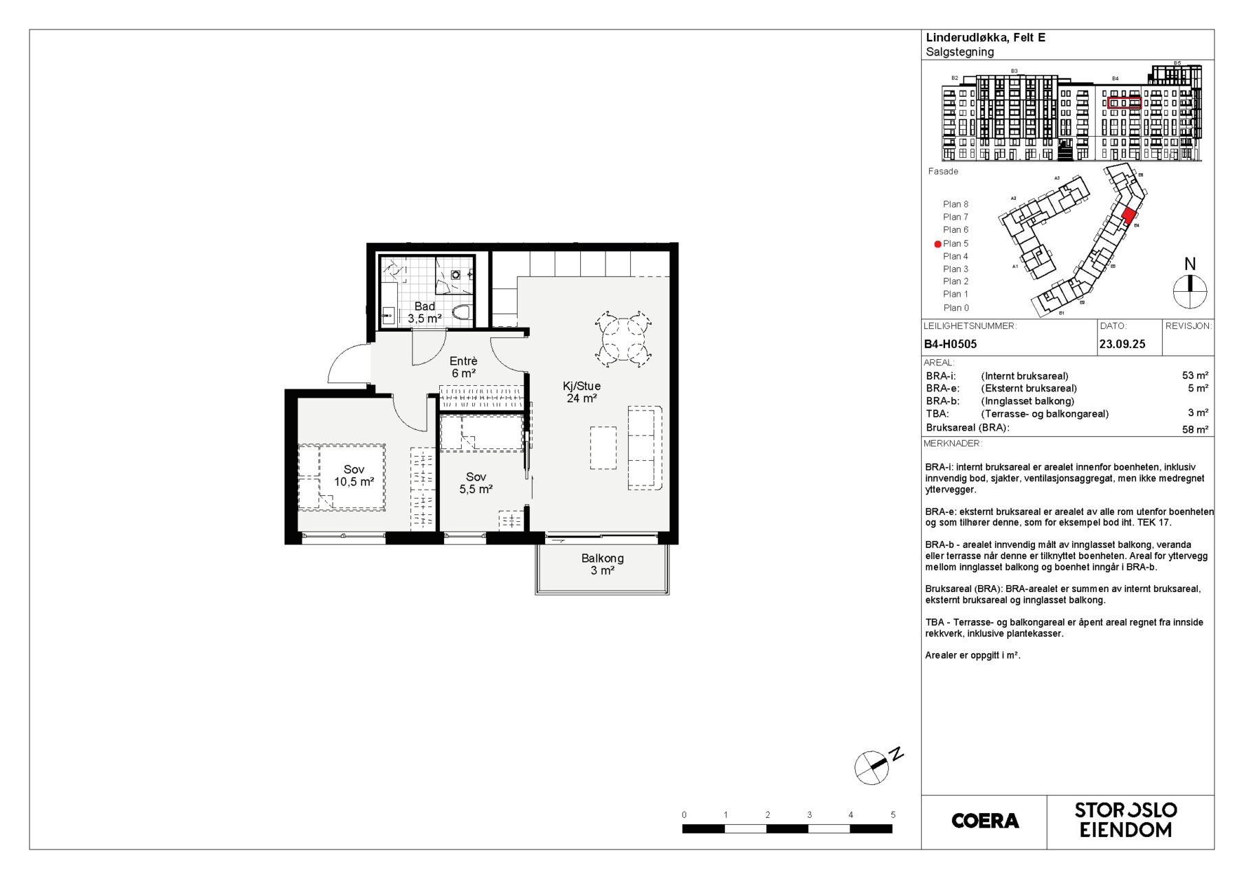 Fra 1. januar 2024 trådte en ny arealstandard i kraft “Areal og Volumberegninger for bygninger” som ble publisert av Norsk Standard 26.10.23. De nye arealbegrepene oppgis som ulike former for BRA, som forklart under. Arealene er oppgitt i hele tall iht. avrundingsregler: