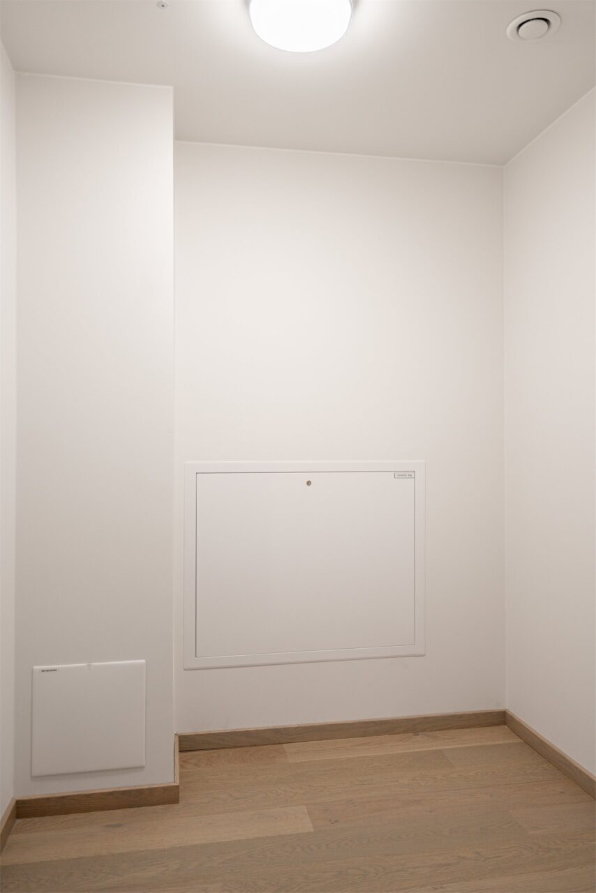 Leilighetene får balansert ventilasjon med varmegjenvinning. Aggregatet plasseres fortrinnsvis i bod, over himling eller på vegg, med luftinntak fra fasade eller tak. Alternativt over himling i entre for leiligheter som ikke har bod. For enkelte 2-roms kan det bli aktuelt å plassere aggregat i avtrekkshette på kjøkken. Avtrekk på våtrom og tilluft i oppholdsrom ventileres i henhold til forskrifter.