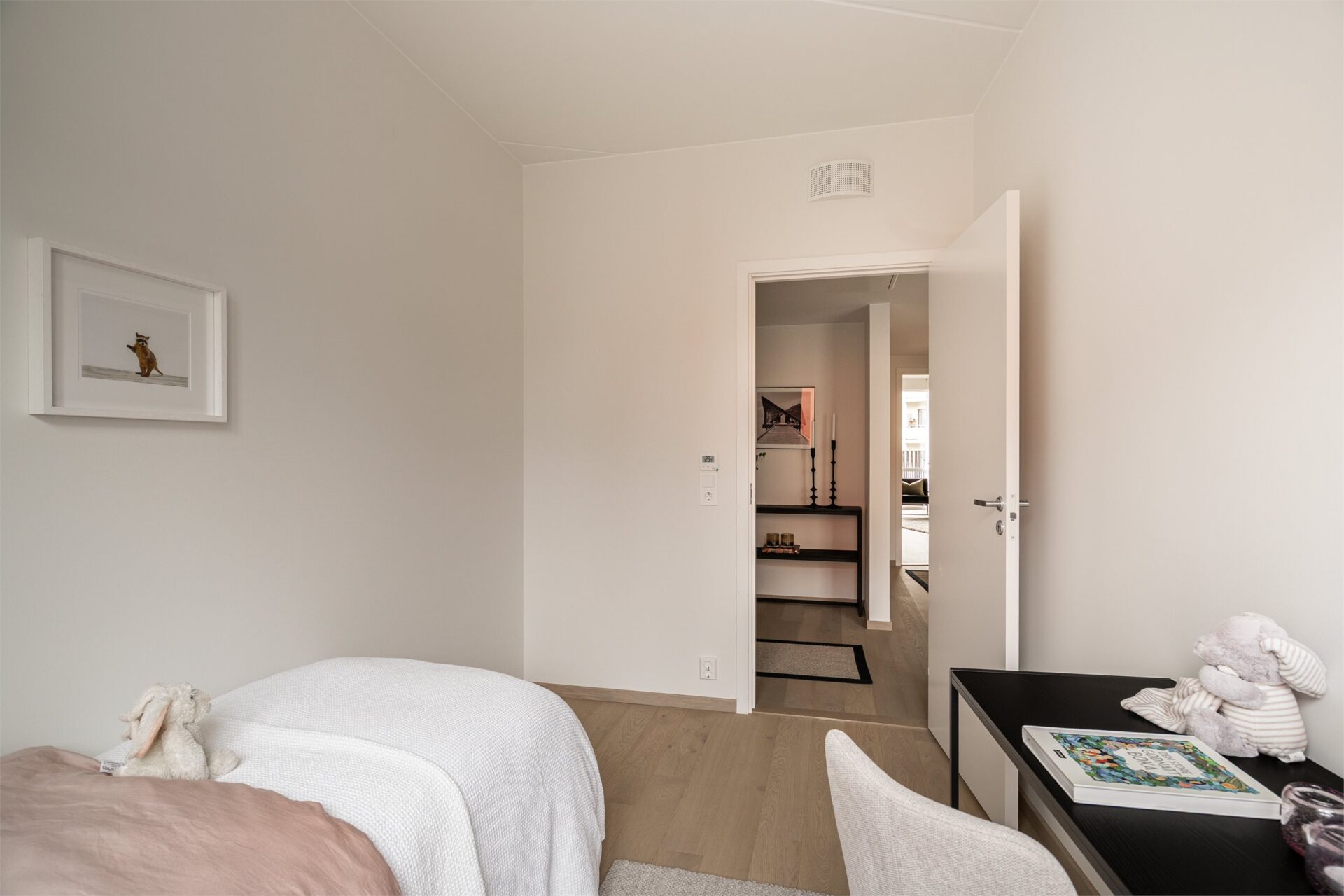 Leiligheten har soverom på hhv. ca. 16,5 m², 7,5 m² og 7m². Hovedsoverommet har god plass til dobbeltseng og nattbord. Tilknyttet hovedsoverom har man innvendig bod/walk-in og baderom. Soverom 2 og 3 passer fint som barnerom, kontor eller gjesterom.