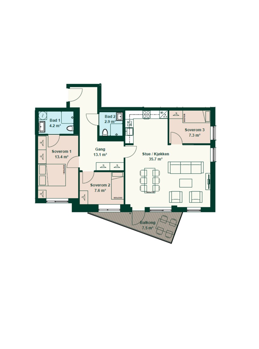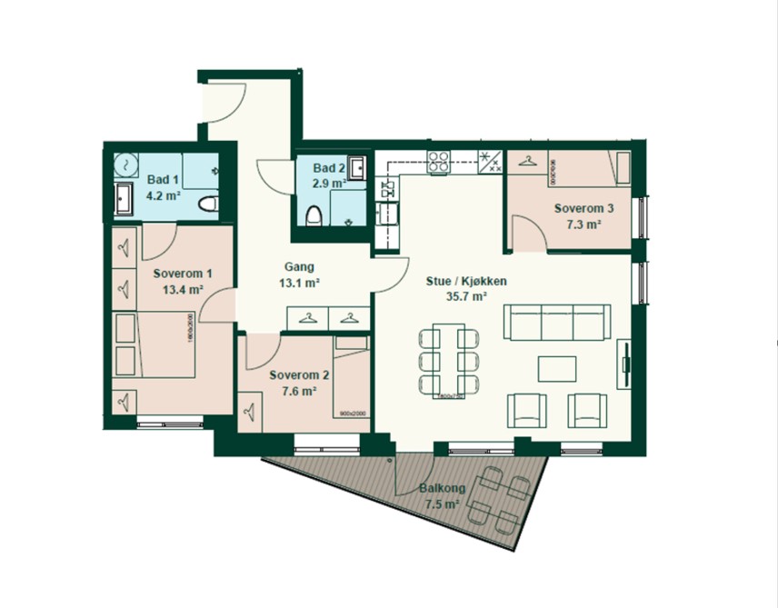 TBA (balkong): 7,5 m²