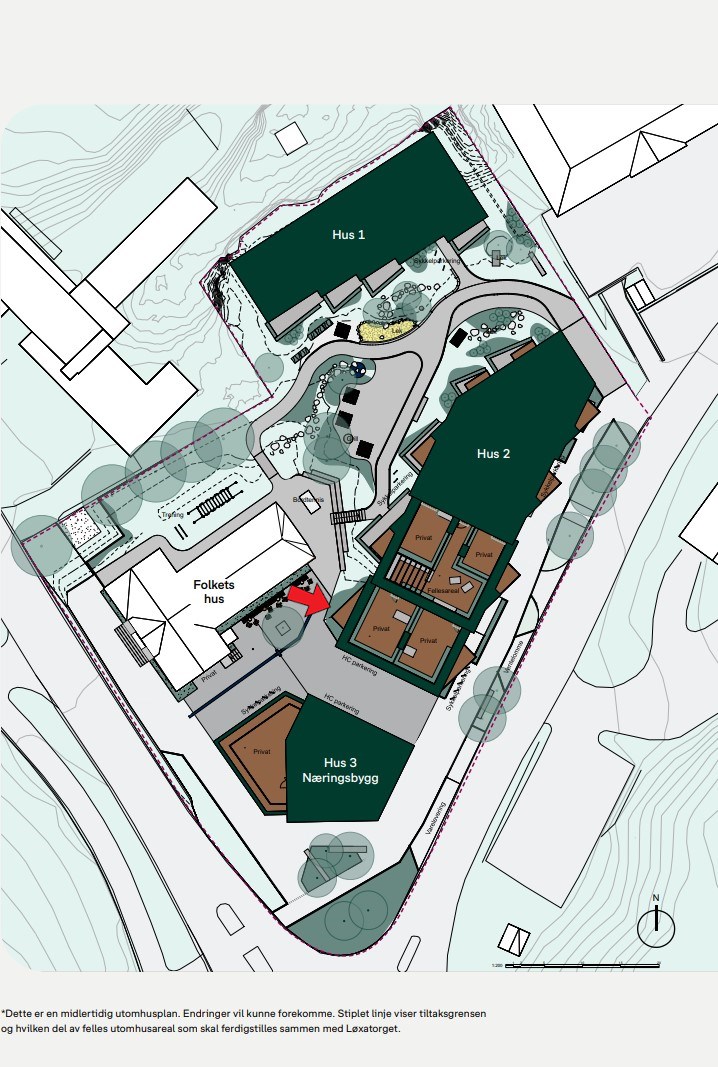 Det tas forbehold om endringer i endelig tomtegrense, tomtestørrelse og organisering. Herunder tas det forbehold om justering av eiendomsgrensene ved fradeling på bakgrunn av krav fra offentlige myndigheter og fradelinger som følge av en annen organisering. Nærmere beskrivelse av felles utomhusareal for prosjektet fremgår av leveransebeskrivelsen og av salgsoppgaven. Kostnadene for drift, vedlikehold, utbedring og tjenesteleverandører for felles utomhusareal fordeles mellom sameierne iht. vedtektene.