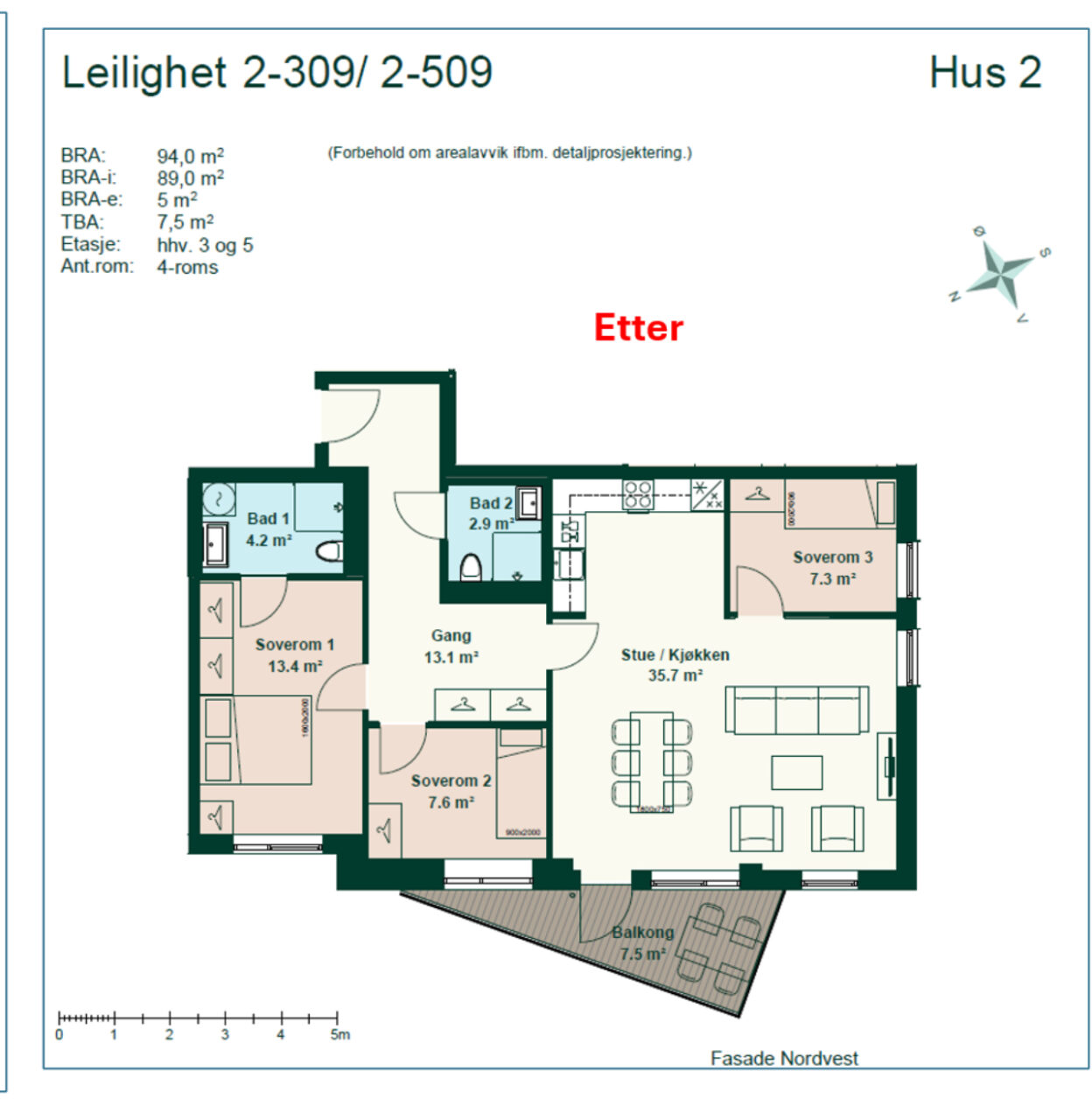BRA-i (innvendig i leilighet): 89 m²