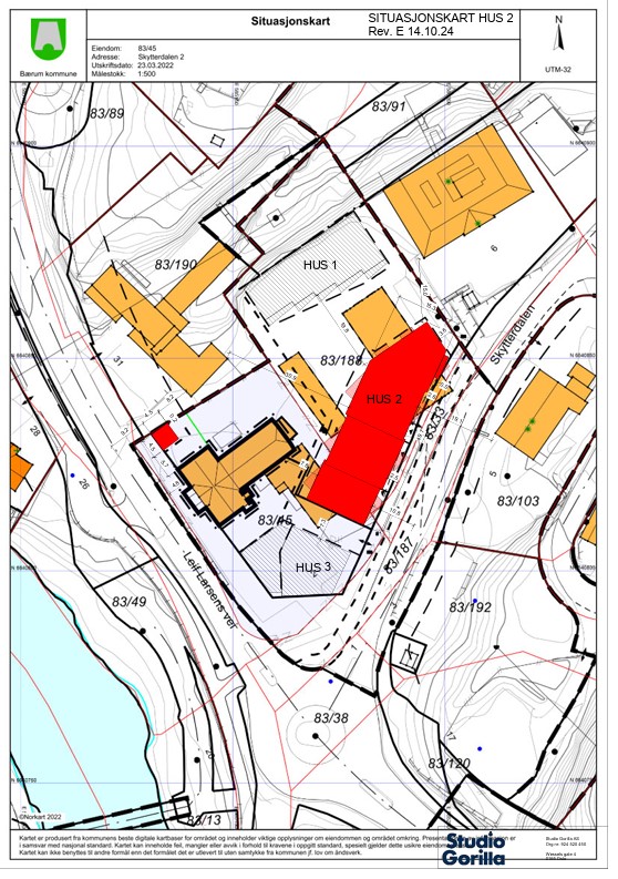På naboeiendommen (gnr. 83, bnr. 45) skal det bygges et næringsbygg som vil bli etablert på eget gårds- og bruksnummer, fradelt fra gnr. 83 bnr. 45.