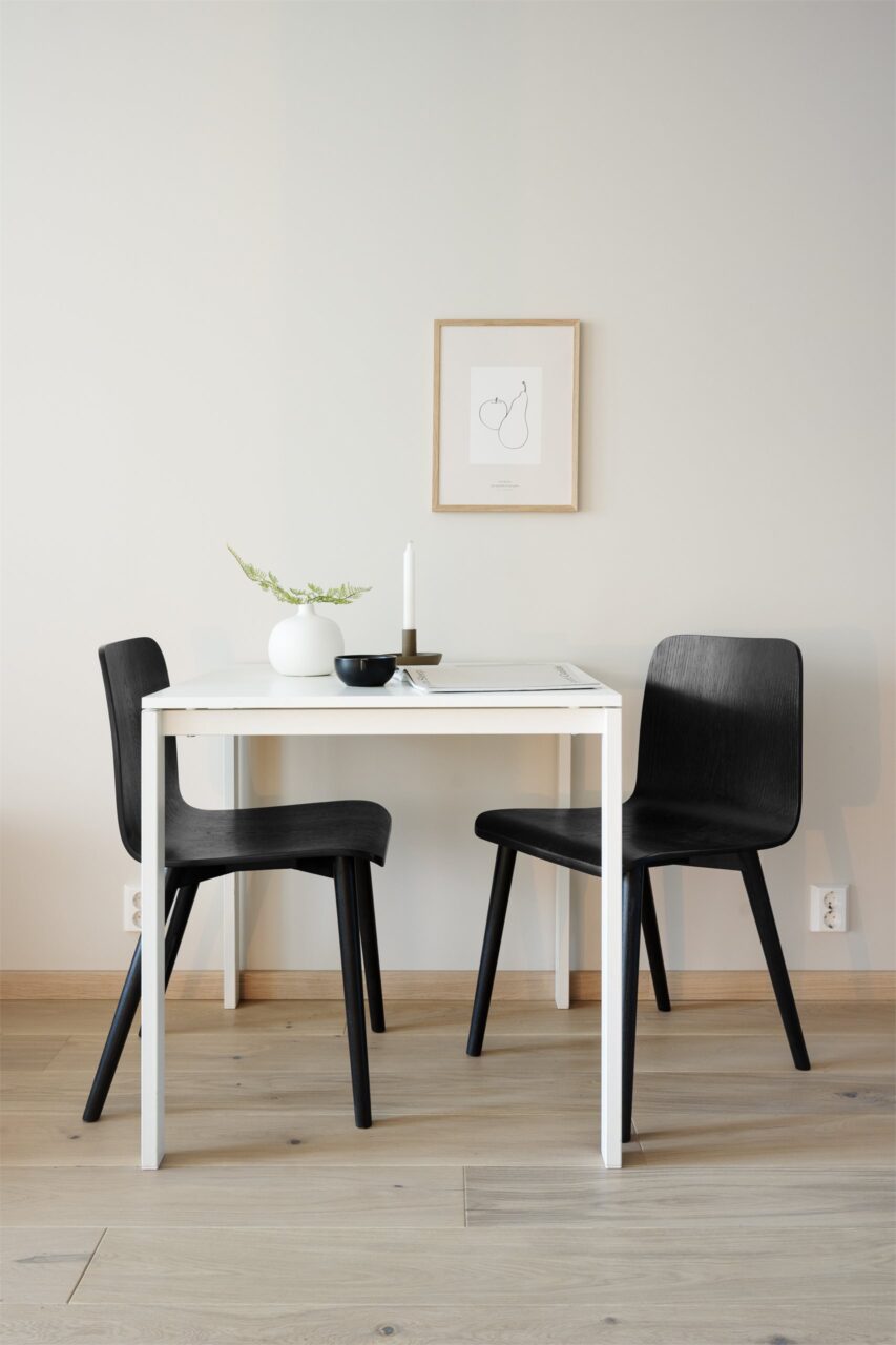 Laminert benkeplate i 20 mm tykkelse.