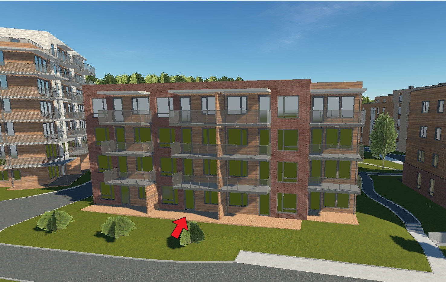 Videre fra stuen tar man seg ut på den nordvestvendte markterrassen med uteareal på totalt ca. 14,5 m². Se utbygger sin interaktive simulator (link i FINN-annonsen eller se https://view.3destate.io/boligvelger/myrvoll-stasjon?unit=22-0105).