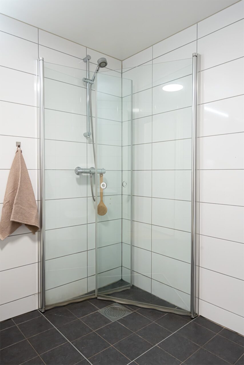 – Praktisk dusjhjørne med vegger til å slå inn når dusjen ikke er i bruk