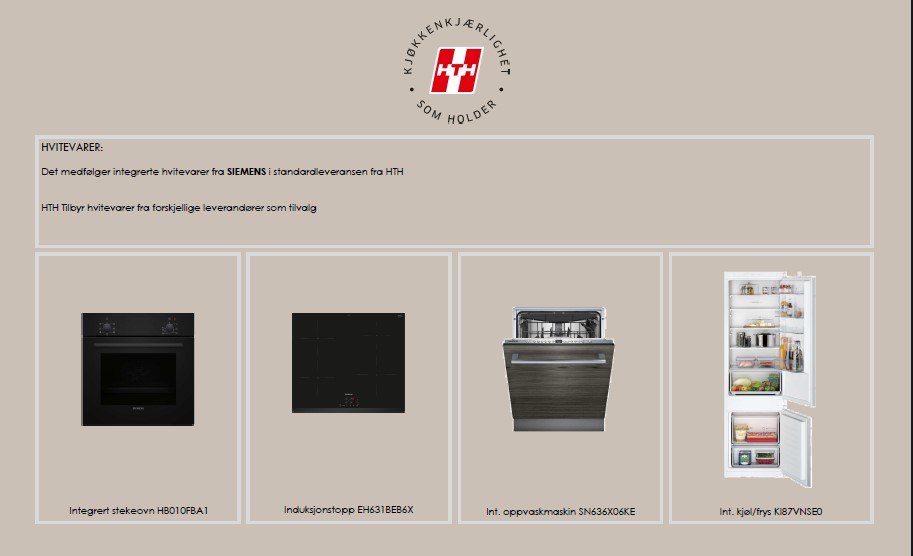 – Integrerte Siemens hvitevarer.