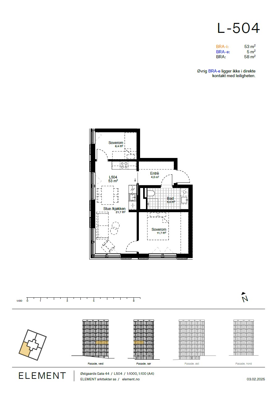 Totalt bruksareal BRA: 58 m²