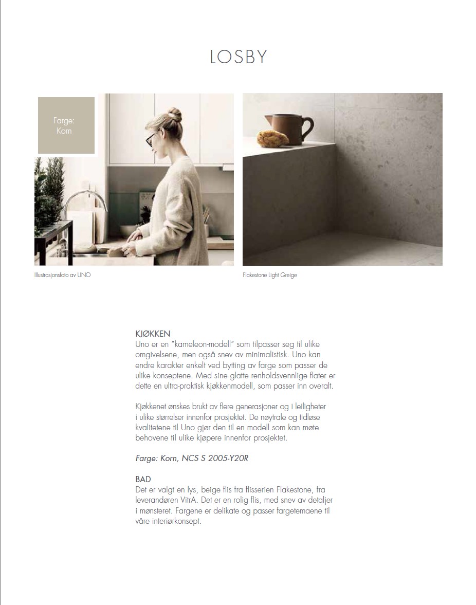 Interiørkonseptet «Losby» er valgt, iht. vedlagte ordrebekreftelse.