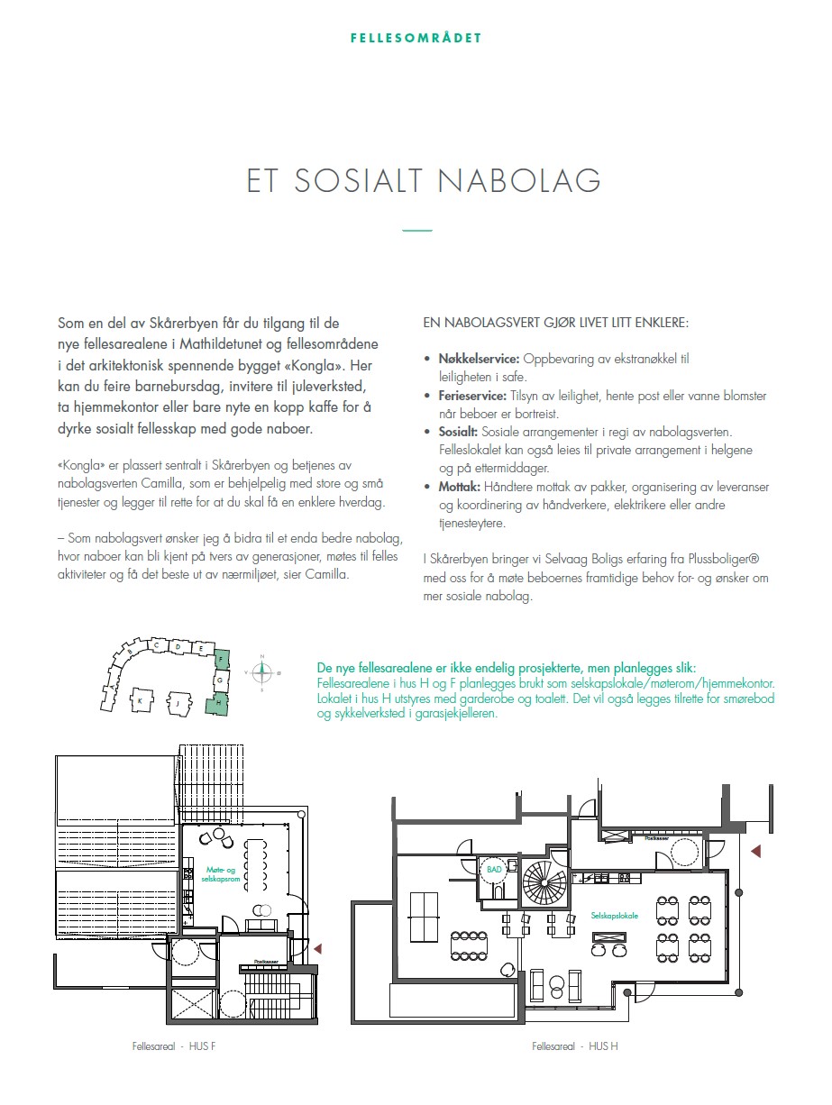 Selskapet Selvaag Pluss Service AS drifter et nabolagskonsept med formål å tilrettelegge for godt naboskap og bruk av felleslokaler/-funksjoner.