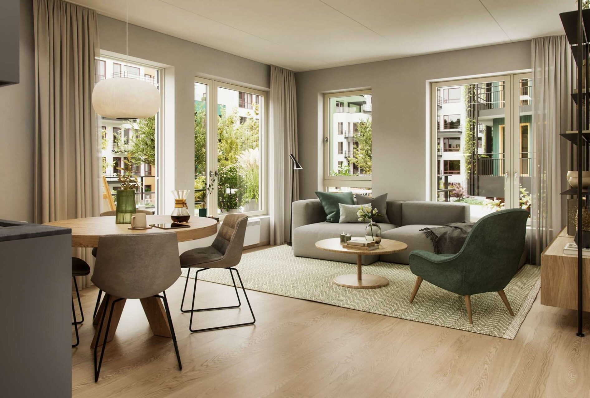 Leilighetene bygges etter siste tekniske standard som gir et godt inneklima og lave energikostnader. Leilighetene får store vindusflater og generøs takhøyde. Ved kjøp innen tilvalgsfristen kan man kostnadsfritt velge mellom tre interiørkonsepter, inkludert kjøkken og bad.