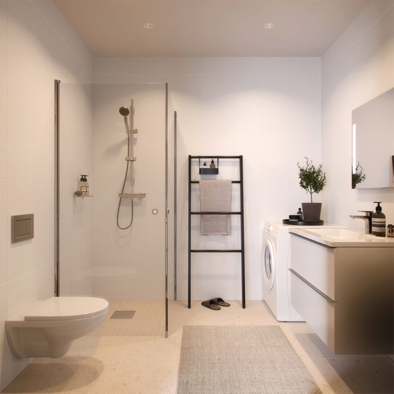 I badegulv leveres det vannbåren varme.