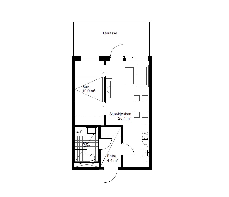 – 2-roms selveierleilighet