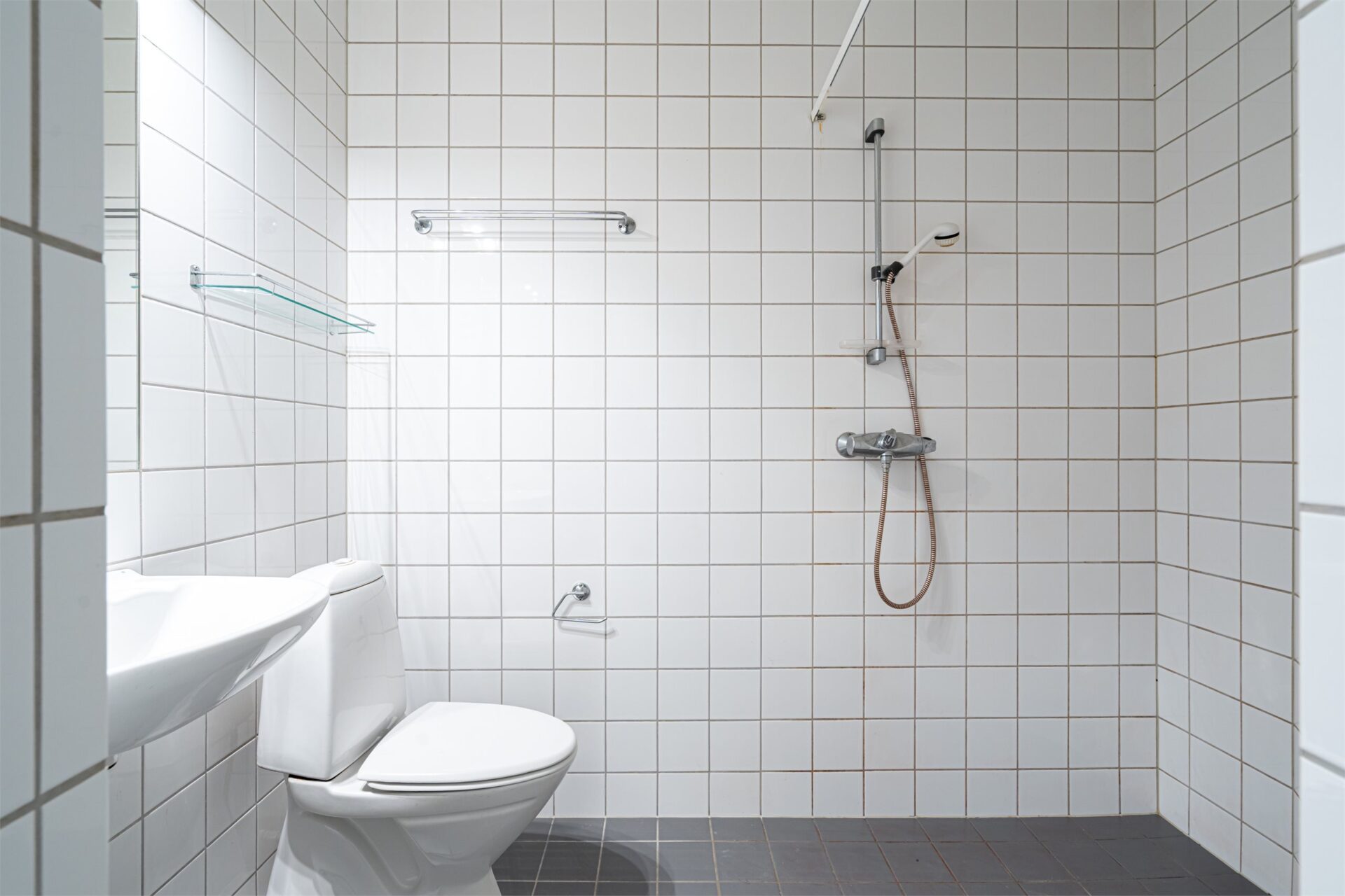 Det er påvist noe misfarge i silikonfug i dusjsonen.