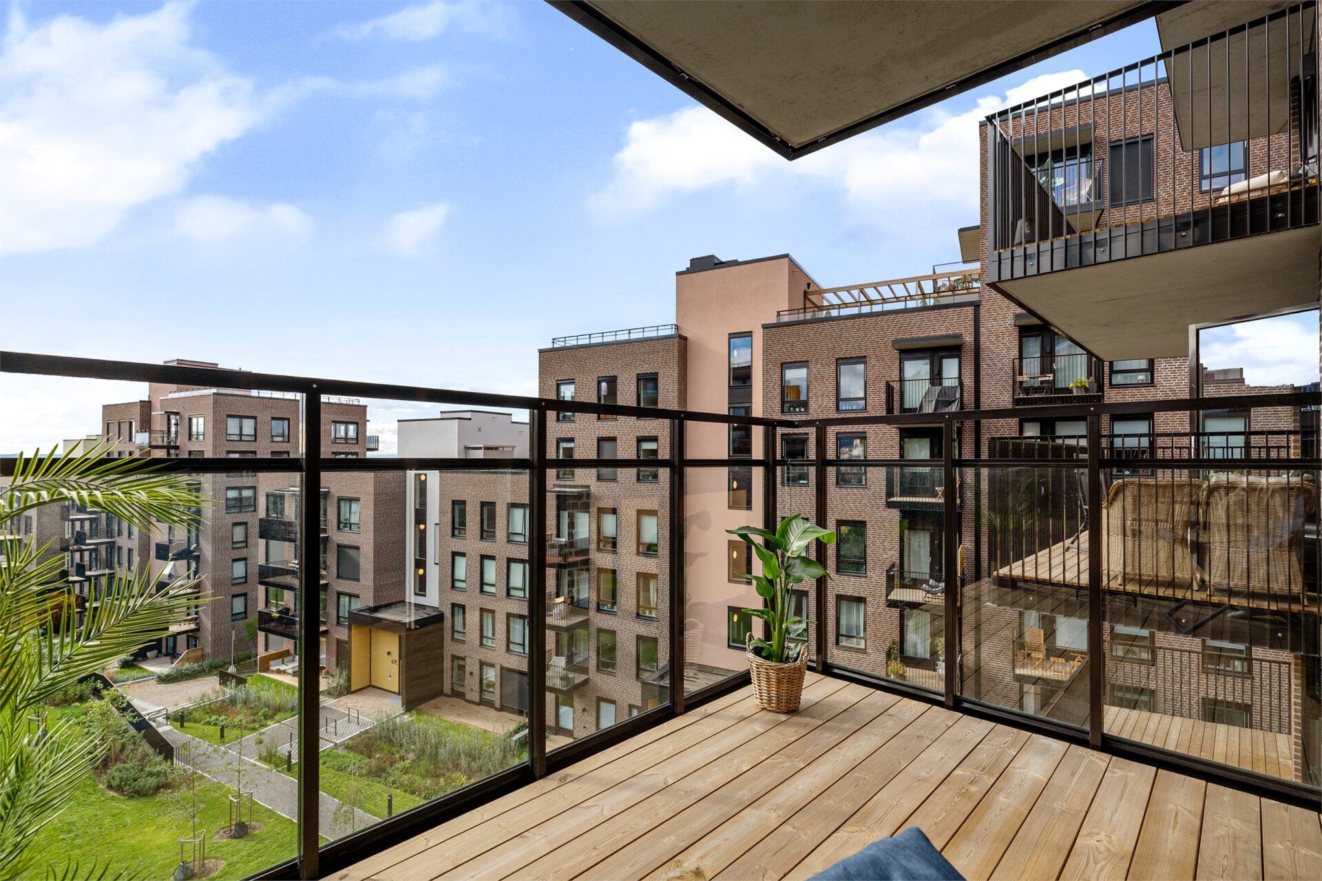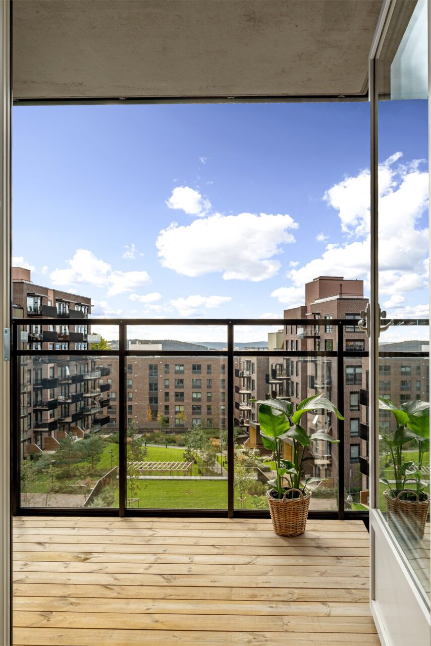 Leilighetens balkong vender mot sørvest og er på 6m² og god plass til utemøbler og grill. Balkongen vender mot hyggelig bakgård og har behagelig utsyn.
