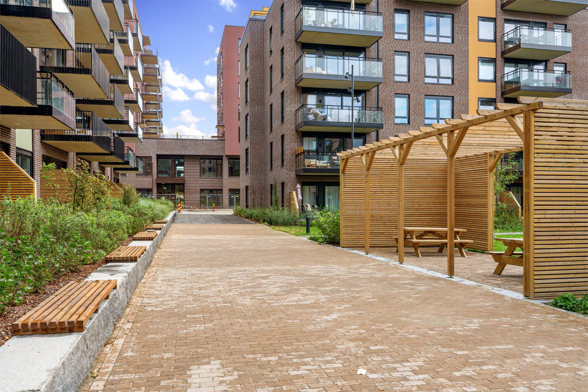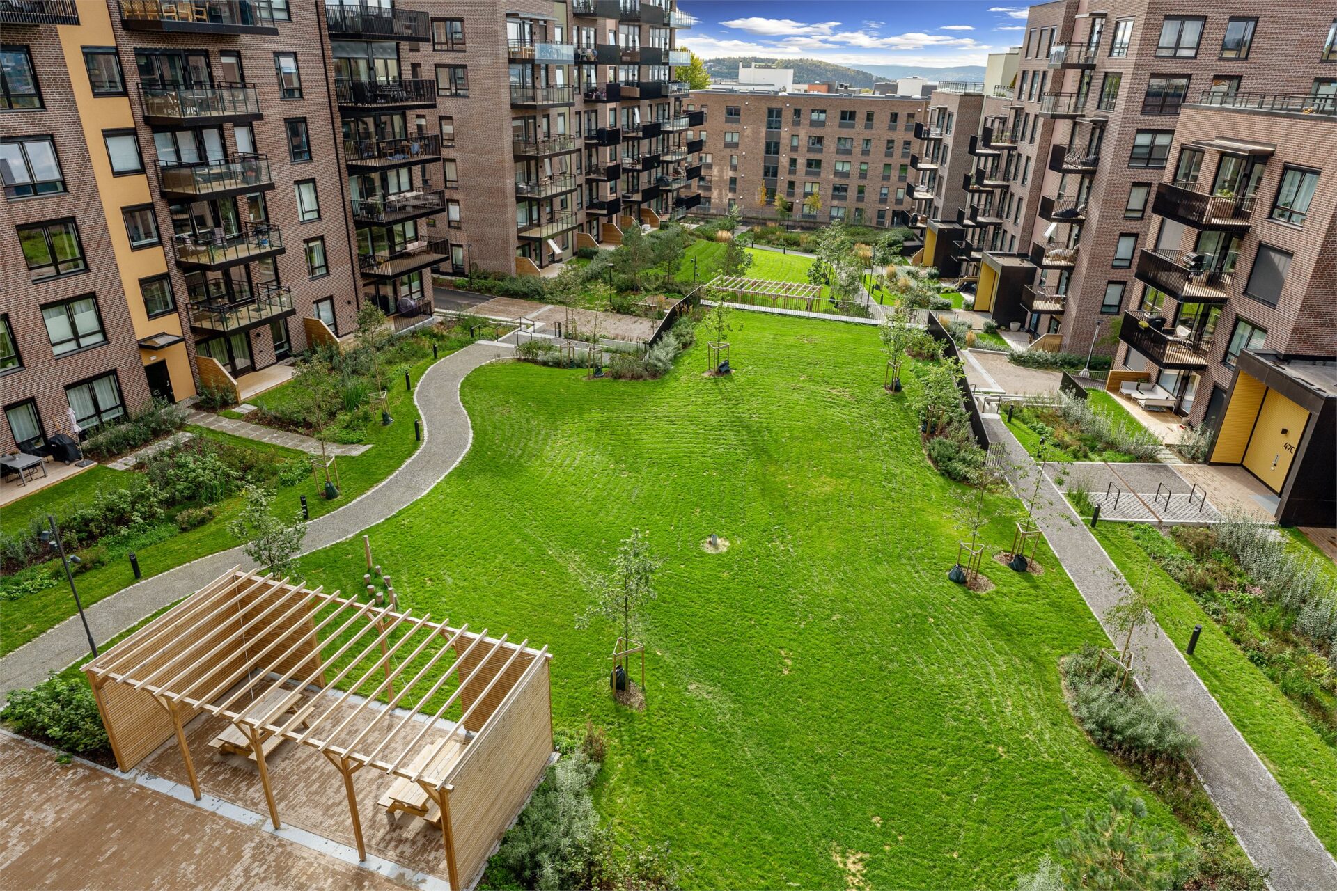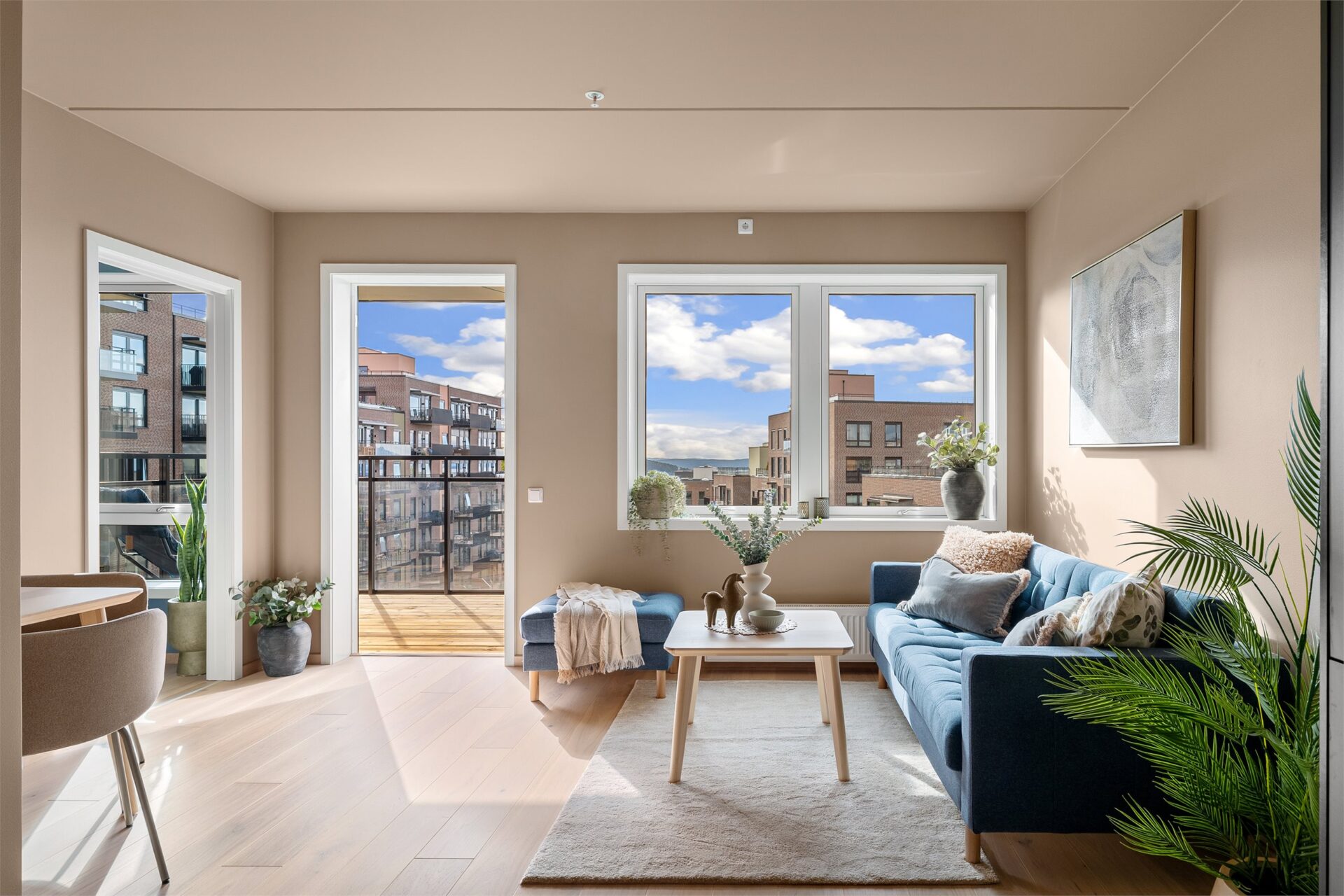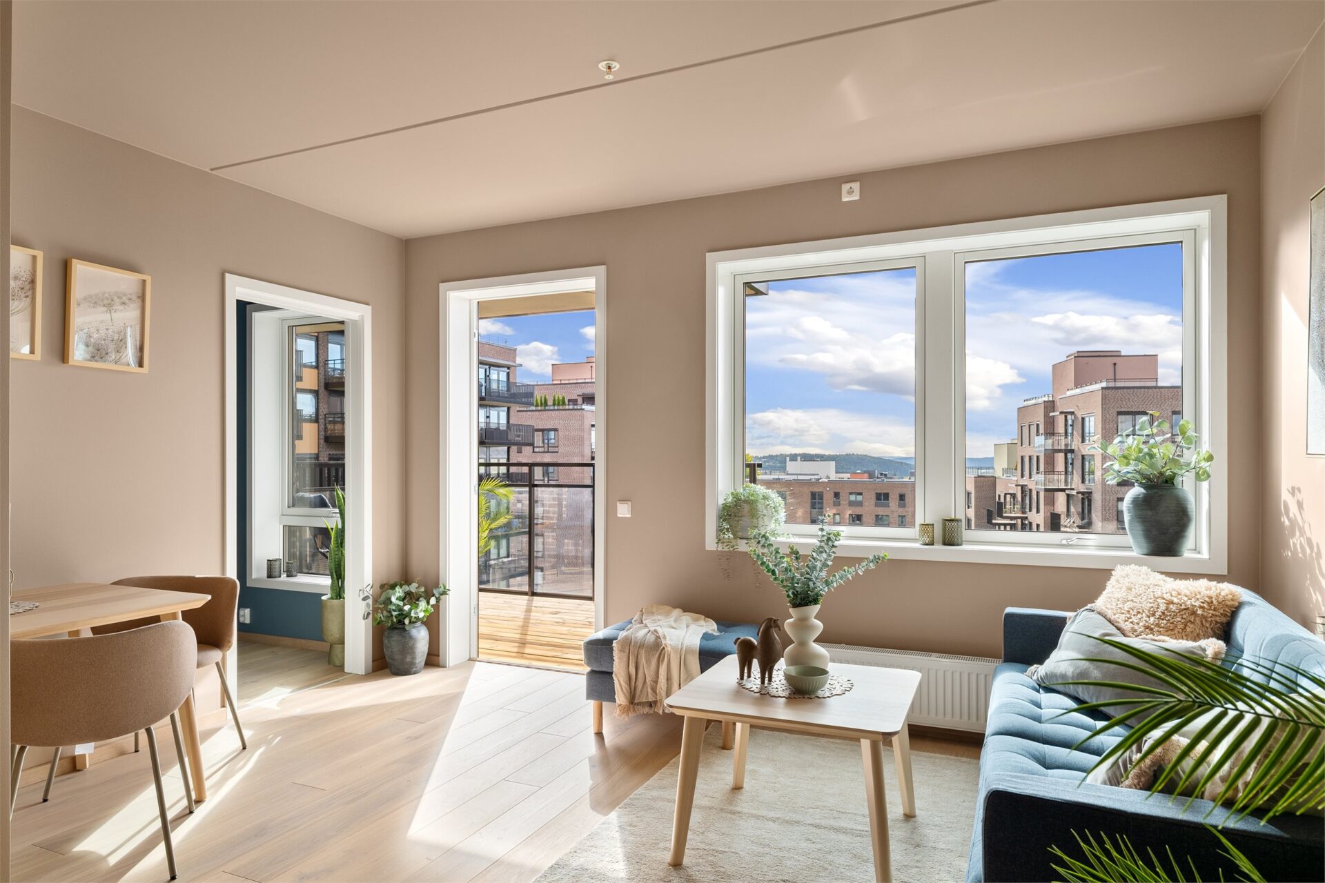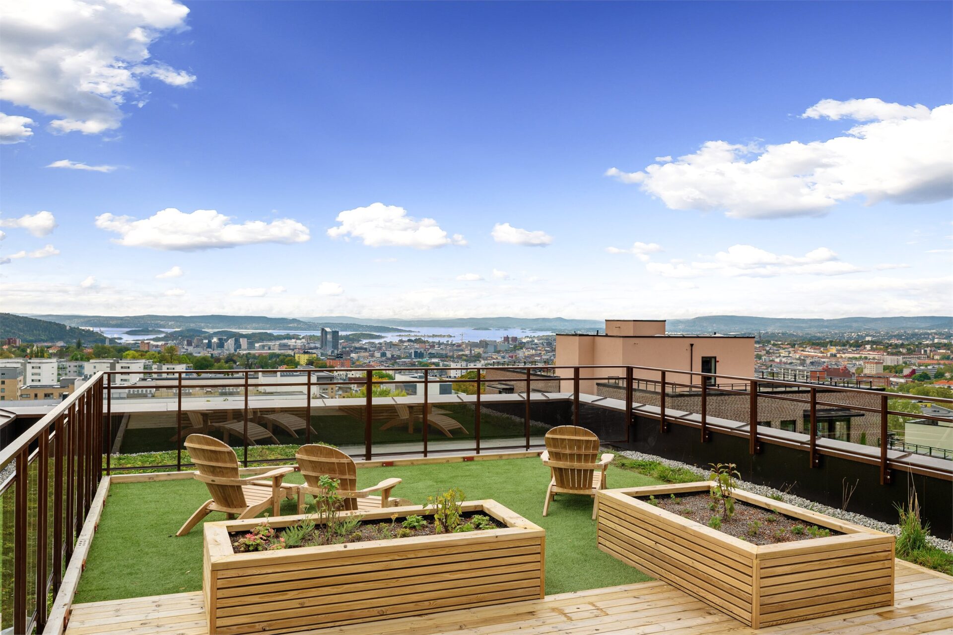 Bygningene ligger høyt i terrenget og bader i gode sol- og lysforhold. Mange av leilighetene byr på fantastisk utsikt over Oslofjorden, og flere har egen vestvendt takterrasse. Frodige fellesarealer, et rolig gatetun og et stort og inkluderende gårdsrom innbyr til sosialt samvær med gode naboer. Og i den nylig oppgraderte byparken, som er nærmeste nabo, kan du ta et avbrekk fra bylivet i naturlige omgivelser.