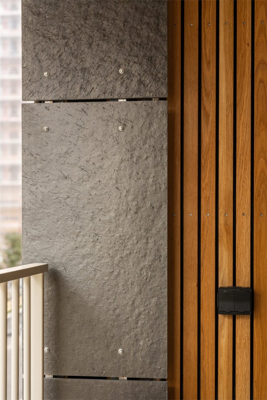 Det er skimrende fasade med norsk rustskifer. Fasaden kles med rustskifer fra Otta, som glitrer i solen og reflekterer lyset på en vakker måte. Ottaskiferen inneholder mineraler, som medfører at fargen endrer seg gradvis over tid etter hvert som den blir utsatt for klimatiske påkjenninger. Ny skifer er for det meste koksfarget, mens en liten andel (5–10%) er rustfarget. Det vil ta ca. 10 år før skiferen har utviklet seg ferdig. I Vannkunsten Syd vil minst 20% av skiferen leveres med rustet, gyllen overflate fra begynnelsen.