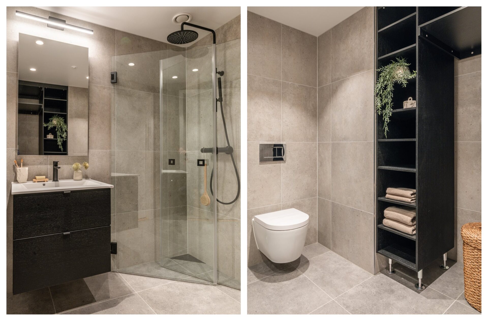 Badene er levert som plassbygde baderom.