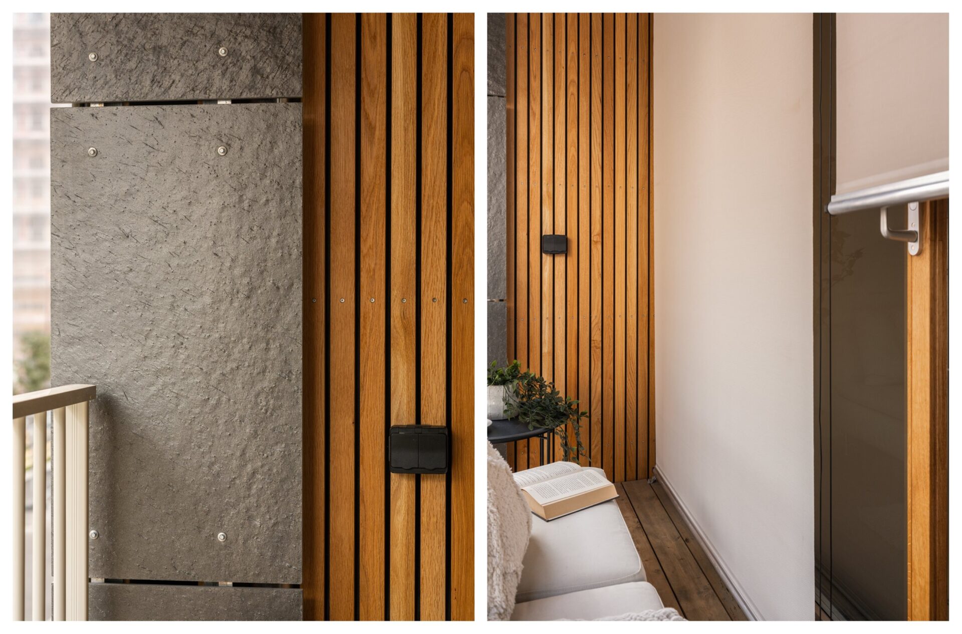 Videre fra stuen er det utgang til en østvendt balkong på ca. 4 m². Det er tremmegulv som er lunt å gå på. På vegg er det belysning og stikkontakt.