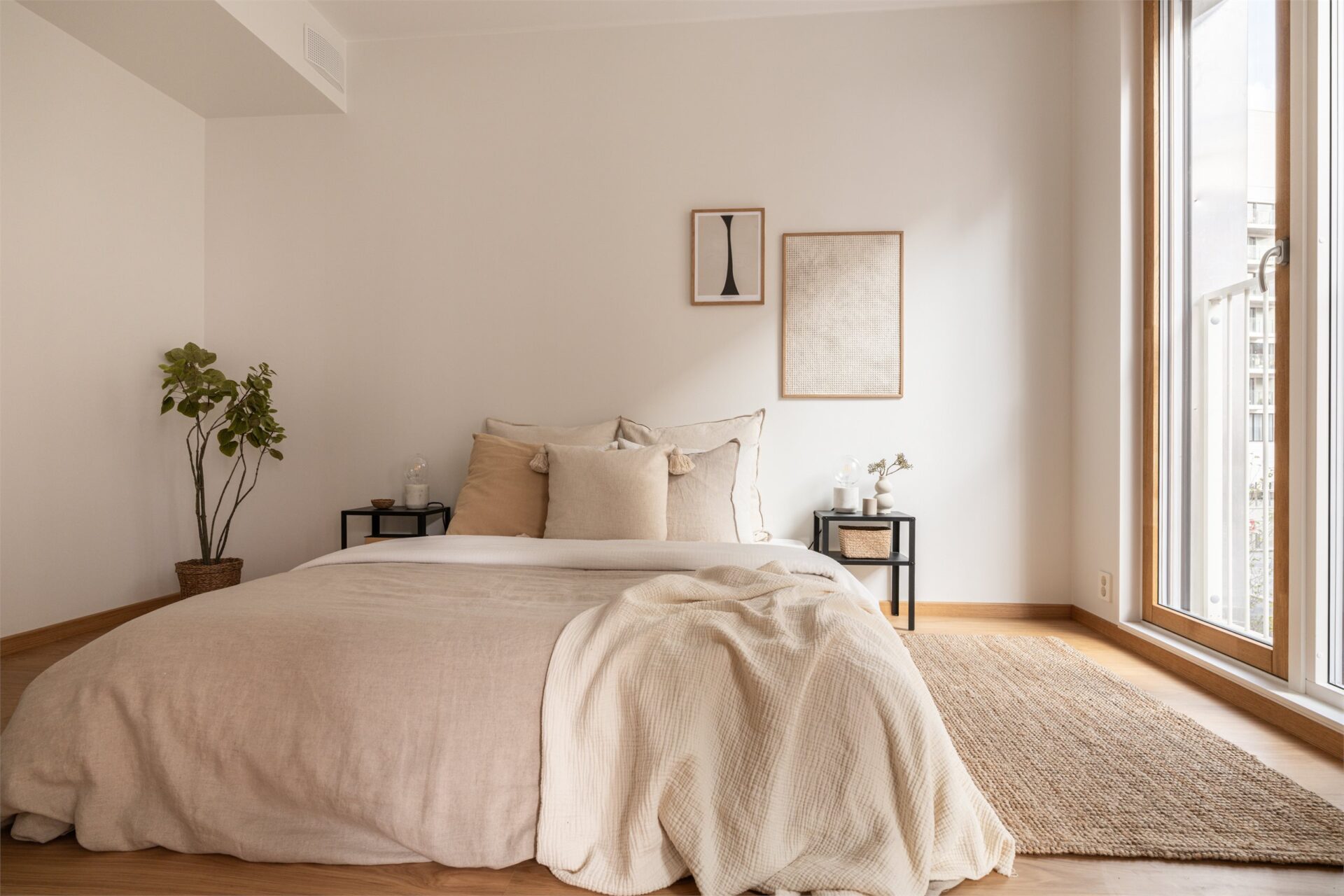 Det er en fransk altan med dør som kan både vippes innover eller åpnes helt opp for god utlufting. Det er utvendig screens på vinduet.