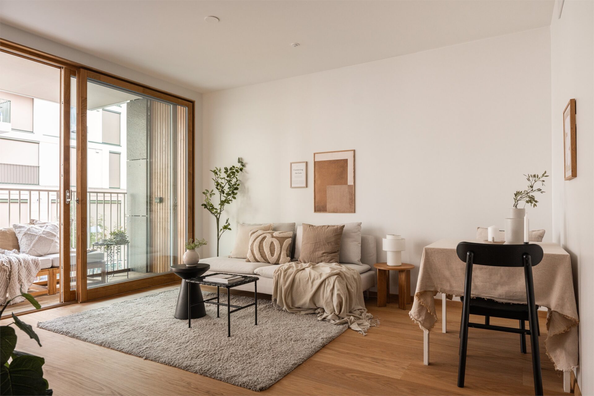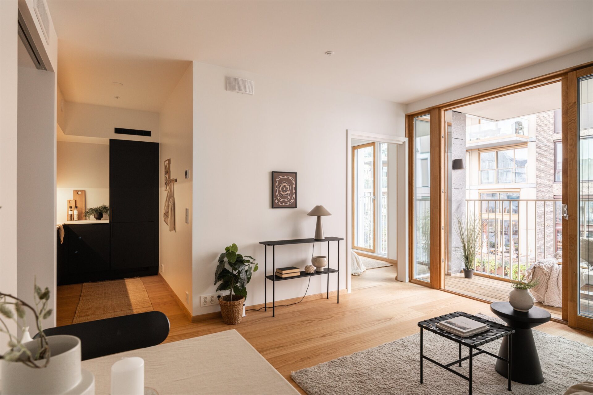 Stue, kjøkken og balkong: