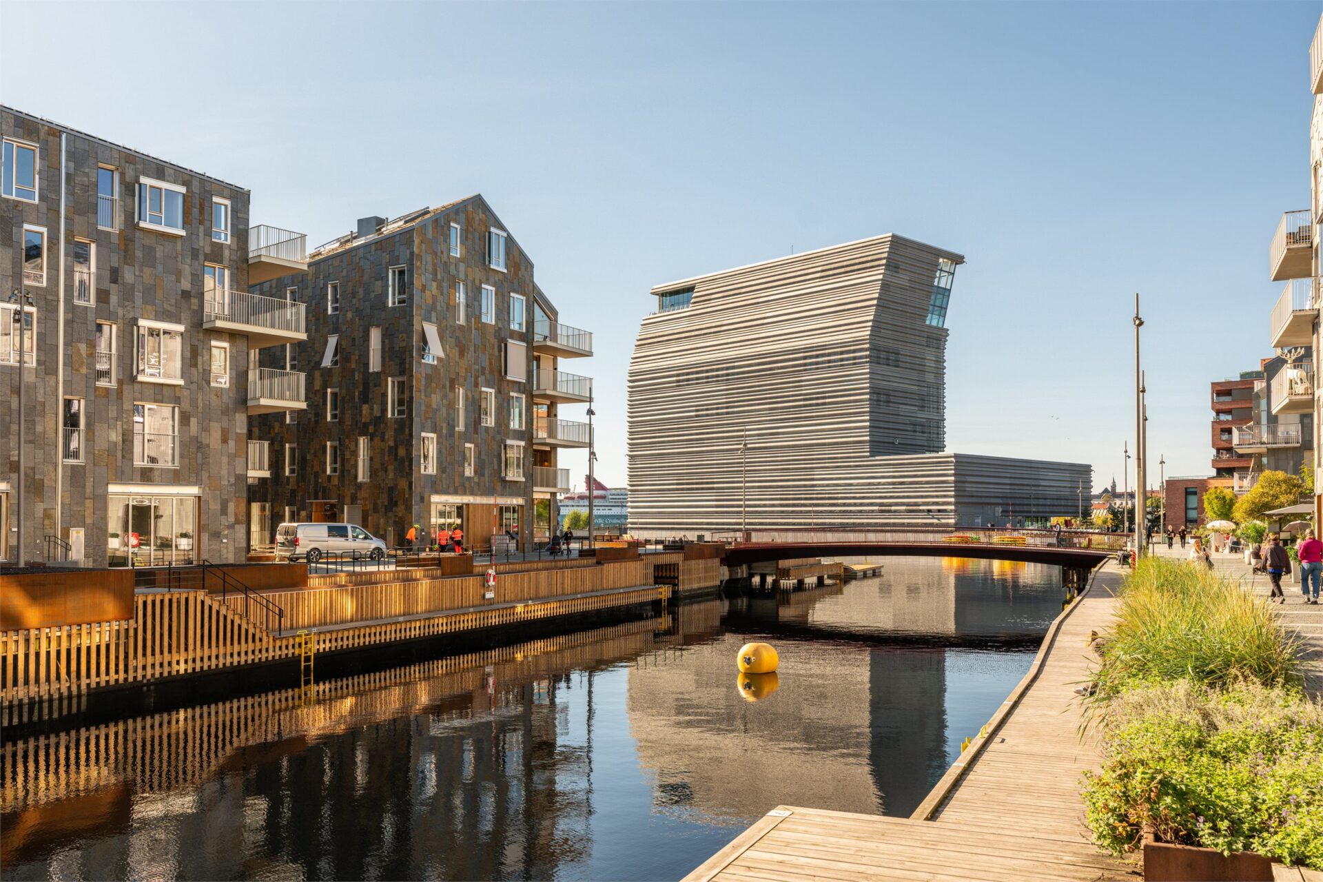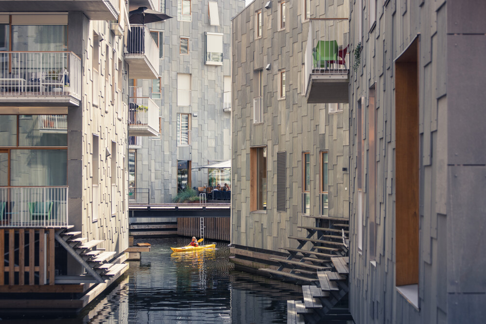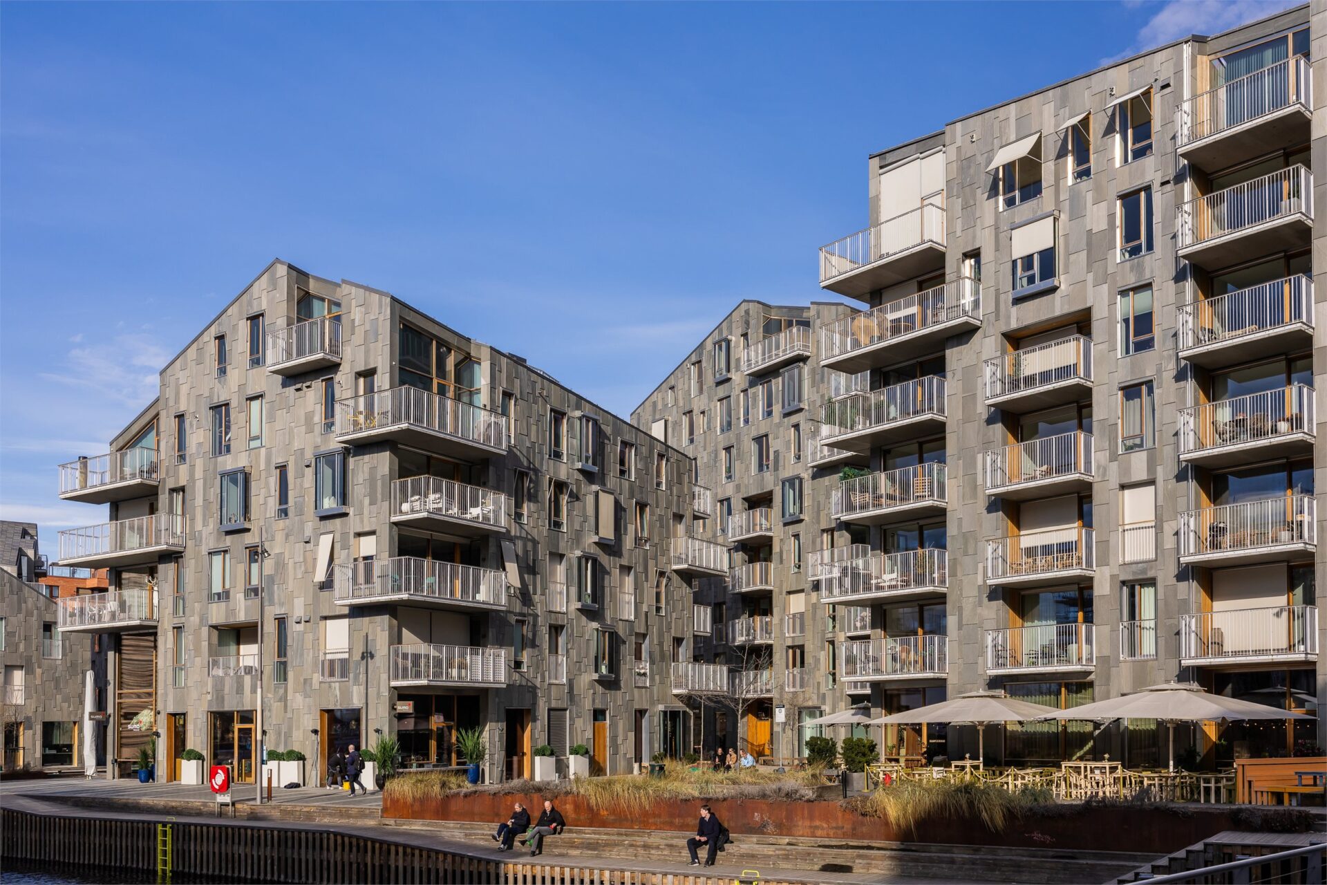 Det er prosjektert og bygget i henhold til Byggeteknisk forskrift TEK17. De fem husene er bygget ut i sjøen, og fjorden ledes inn mellom bebyggelsen. Vannspeil, broer og kanaler gir en maritim opplevelse. Her kan du bo rett ved det beste Oslo har å by på, med direkte tilgang til fjorden, badstuer, badebrygger, restauranter med solrike uteserveringer, kafeer, butikker og helse- og velværetilbud. Samtidig kan du gå tørrskodd under bakken til Meny og de andre butikkene i nabobygget Clemenskvartalet. Husene er oppført i tre ulike størrelser, med de laveste nærmest sjøen. De er nøye plassert i forhold til hverandre for å gi best mulige sol- og utsiktsforhold fra hver leilighet.