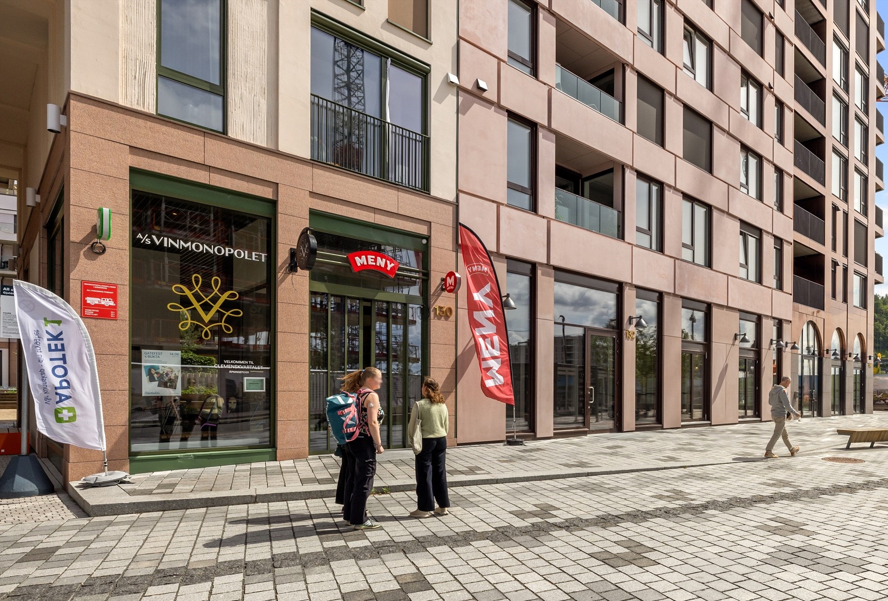Rett over broen til Bispevika Syd finner man Clemenskvartalet, hvor du har en stor og flott Meny butikk, Vinmonopolet, apotek og bakeri/ brasseri i Lutlaget.