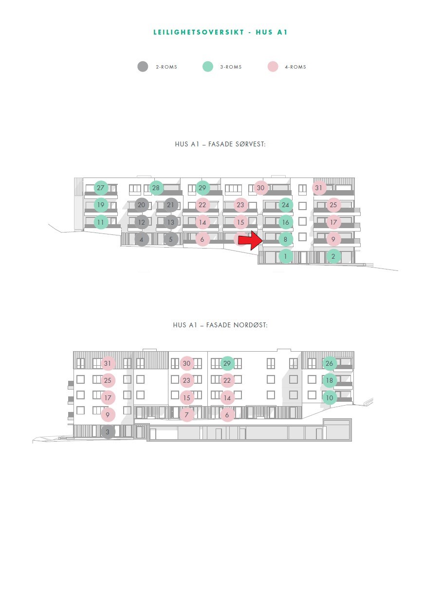 – Plantegningene presentert i prospektet er ikke detaljprosjektert med kjøkkenleverandør, og det tas forbehold om at endring av kjøkkeninnredning kan forekomme som følge av valg av leverandør. Det gjøres særlig oppmerksom på at møbleringsforslag angitt med heltrukne linjer på plantegningene ikke gjennomgående tilfredsstiller forskriftsmessige tilgjengelighetskrav. Plantegningene er stedvis derfor også vist med stiplede linjer, som angir møbleringsforslag i tråd med forskriftskrav i det aktuelle rommet.