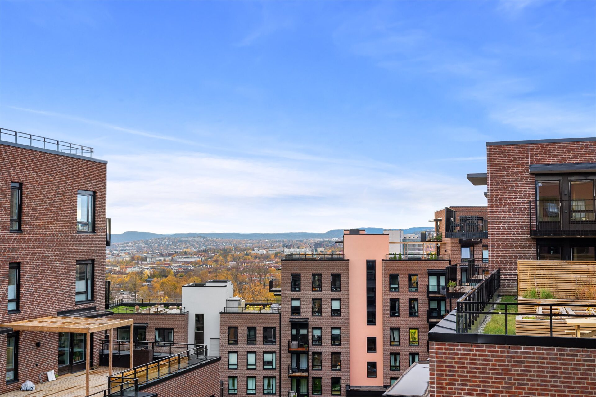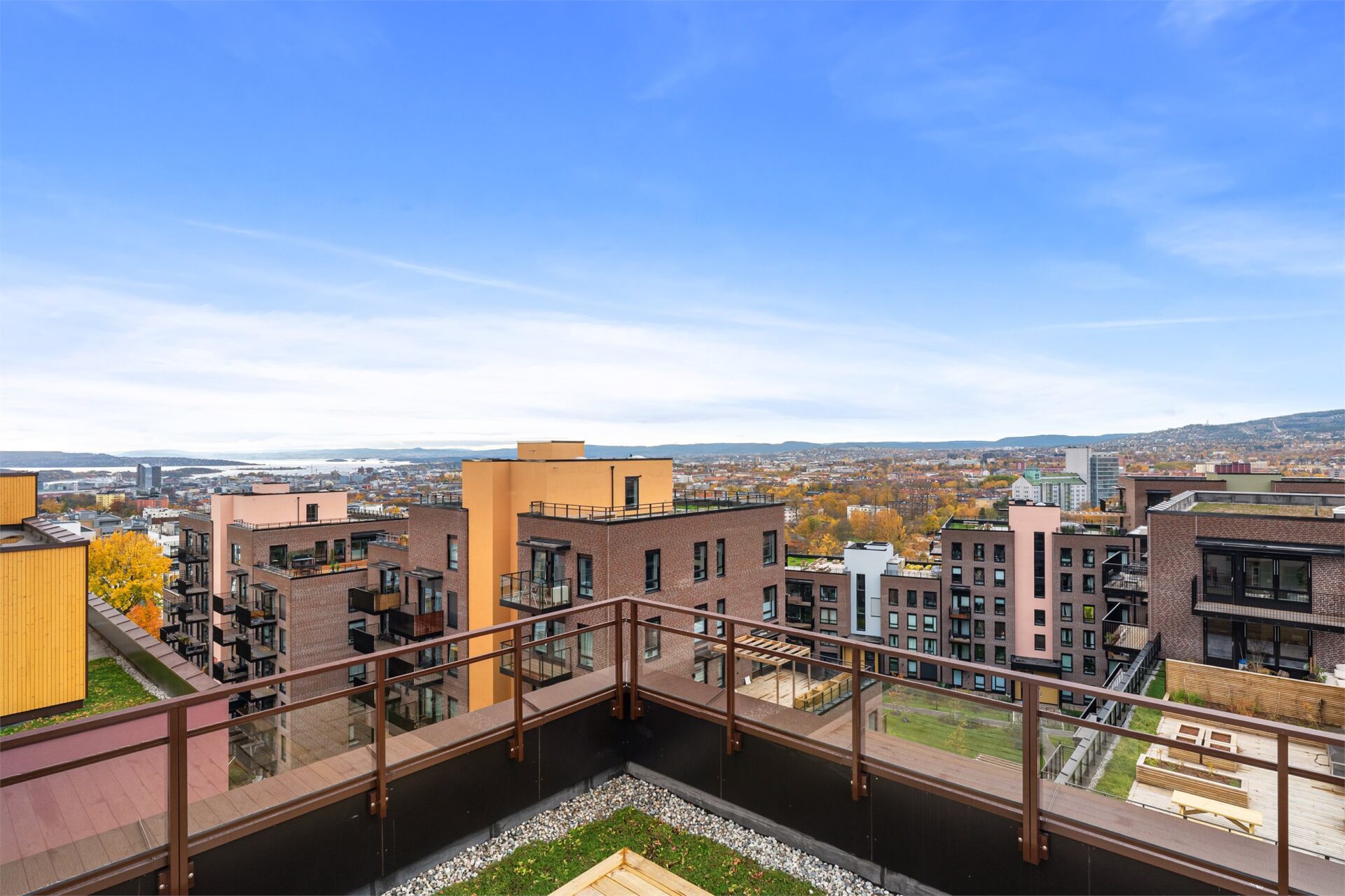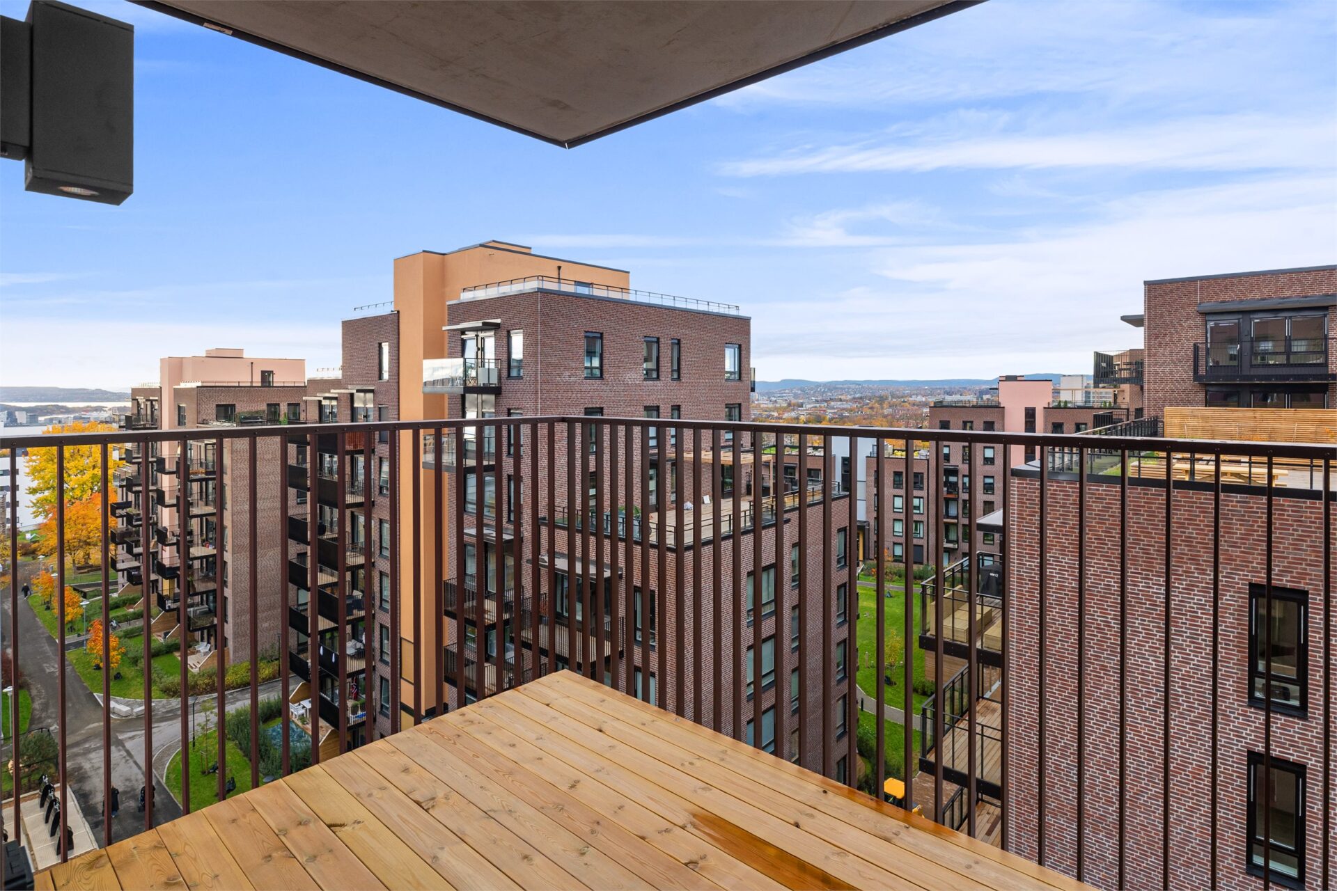 Dette er en helt ny 3-roms hjørneleilighet i byggets 7. etasje, med nordvestvendt balkong på 7 m². Her er det særdeles gode solforhold og flott utsikt. Sentral beliggenhet på Løren med kort vei til butikker og kollektivt.