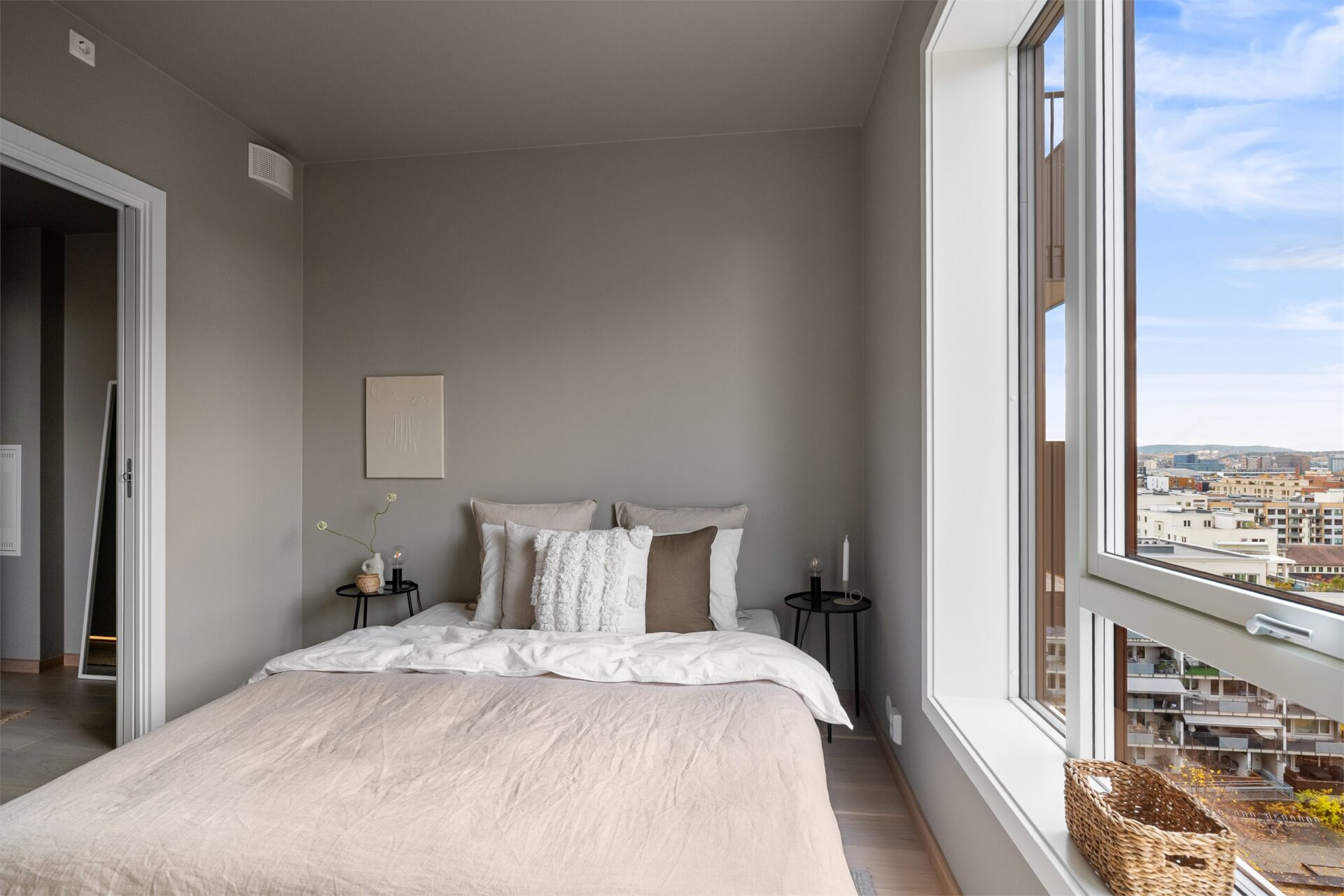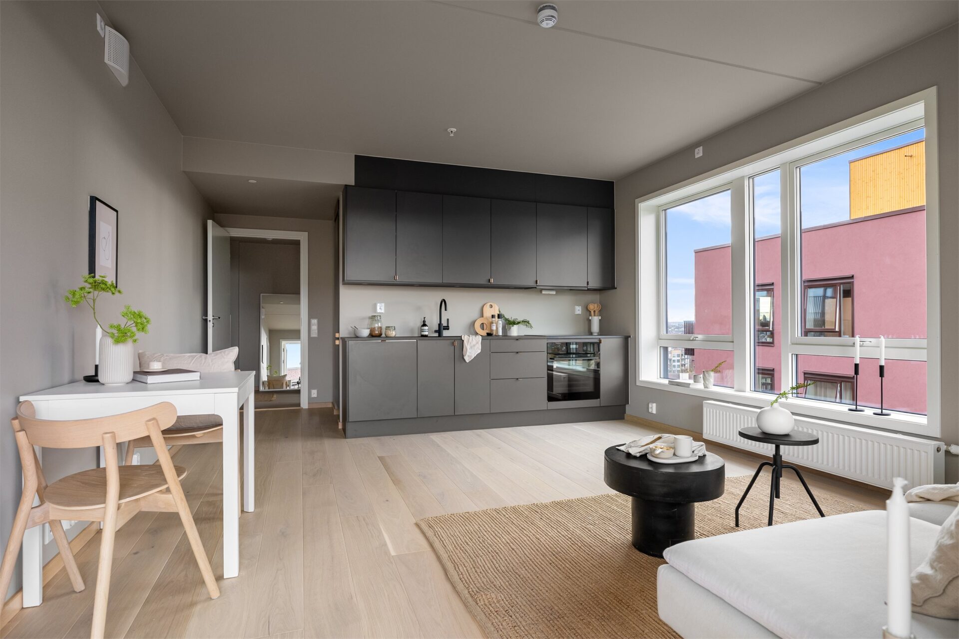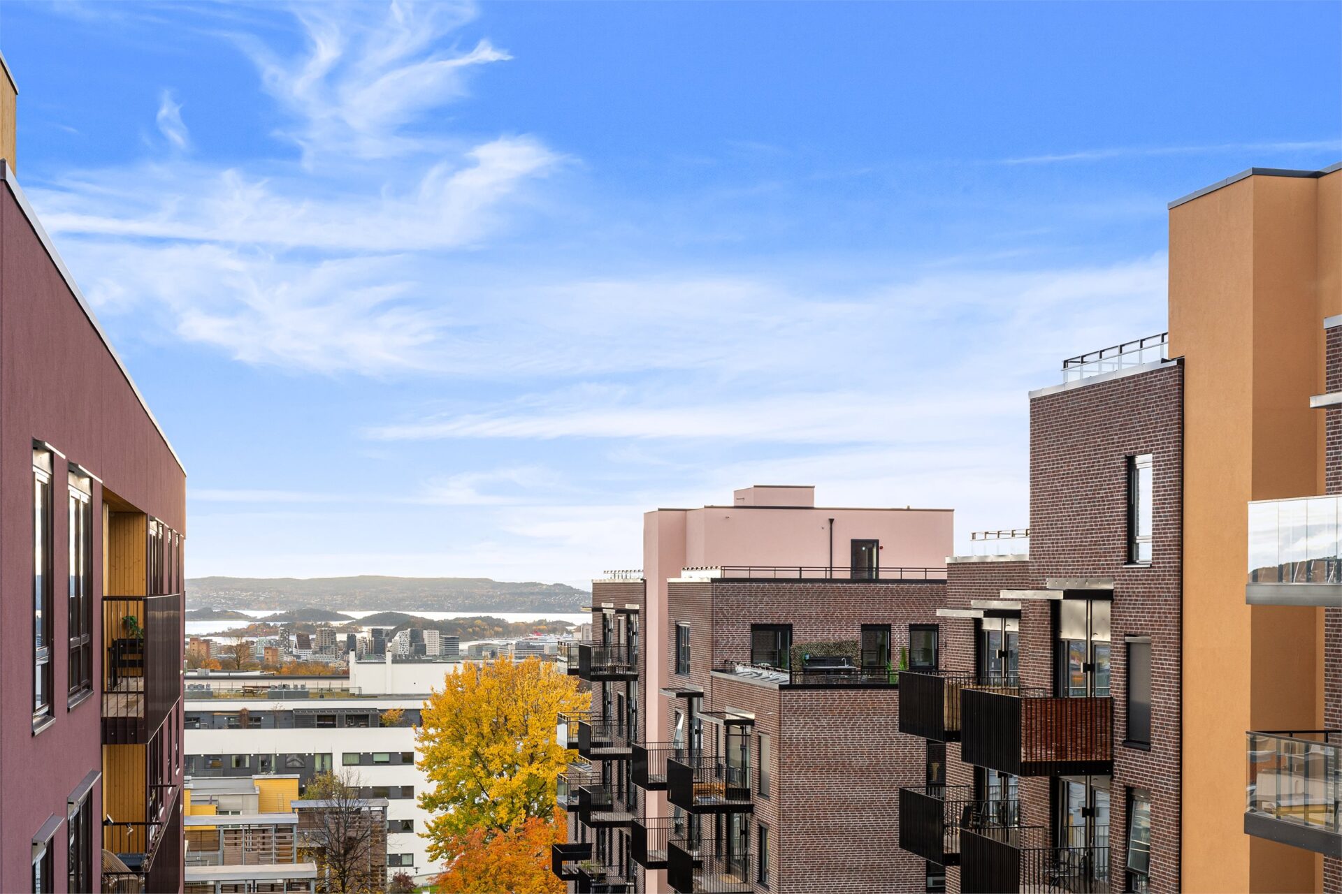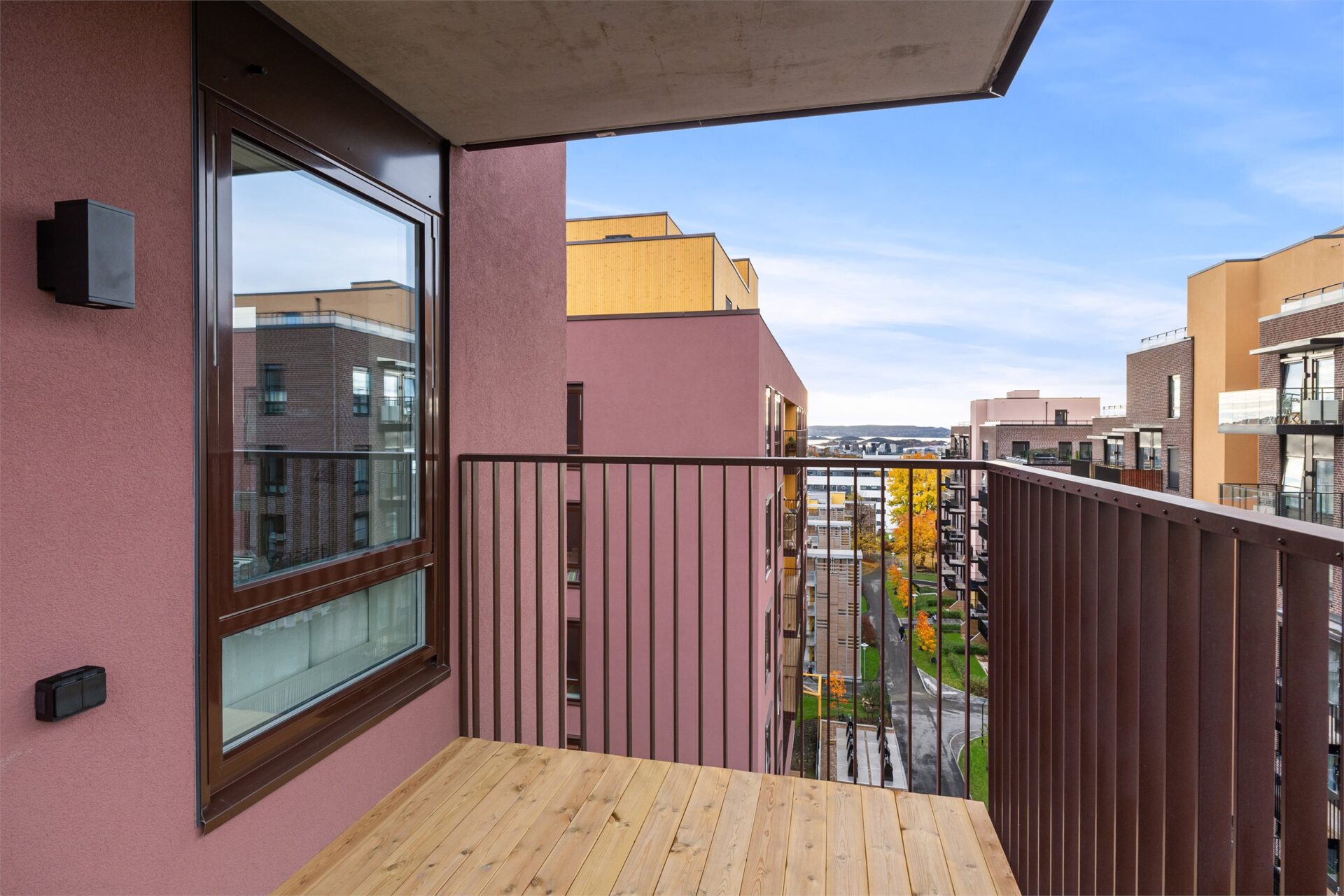 Dette er en helt ny 3-roms hjørneleilighet i byggets 7. etasje, med nordvestvendt balkong på 7 m². Her er det særdeles gode solforhold og flott utsikt. Sentral beliggenhet på Løren med kort vei til butikker og kollektivt.