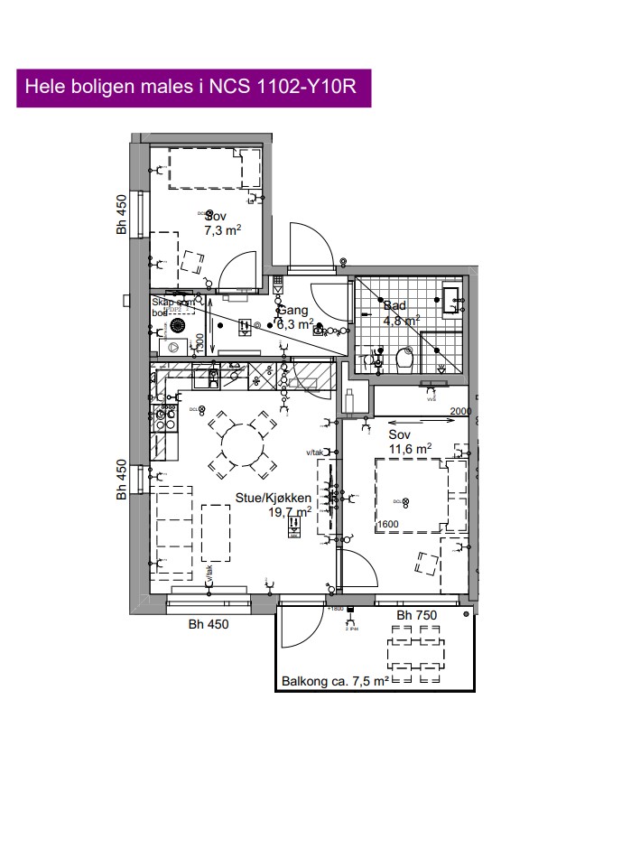 Romhøyde: Innvendig netto romhøyde i boligene er ca 2,50 m. I nedforede områder, f.eks i våtrom vil romhøyden være lavere grunnet føringer i tak.