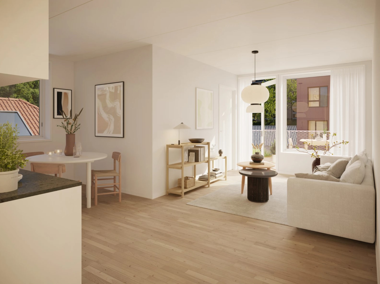 Helt ny 3-roms hjørneleilighet med nordvestvendt balkong. Lav dok.avg. Est. ferdig fra høst 2026