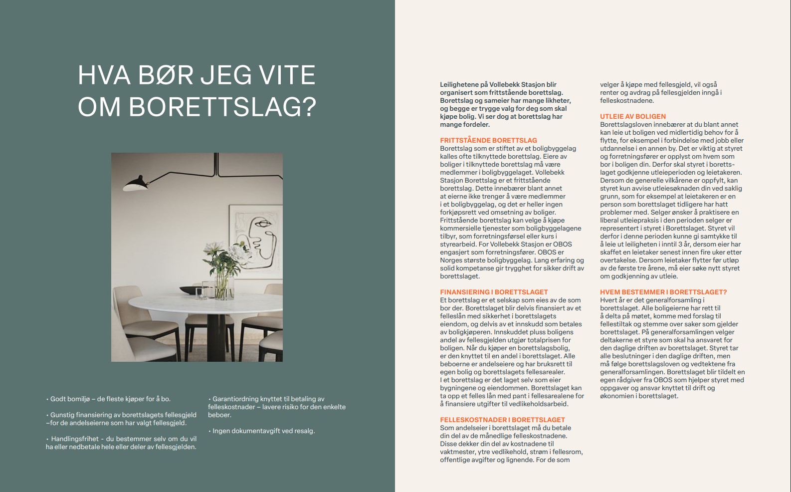 Leilighetene på Vollebekk Stasjon blir organisert som frittstående borettslag. Borettslag og sameier har mange likheter, og begge er trygge valg for deg som skal kjøpe bolig.