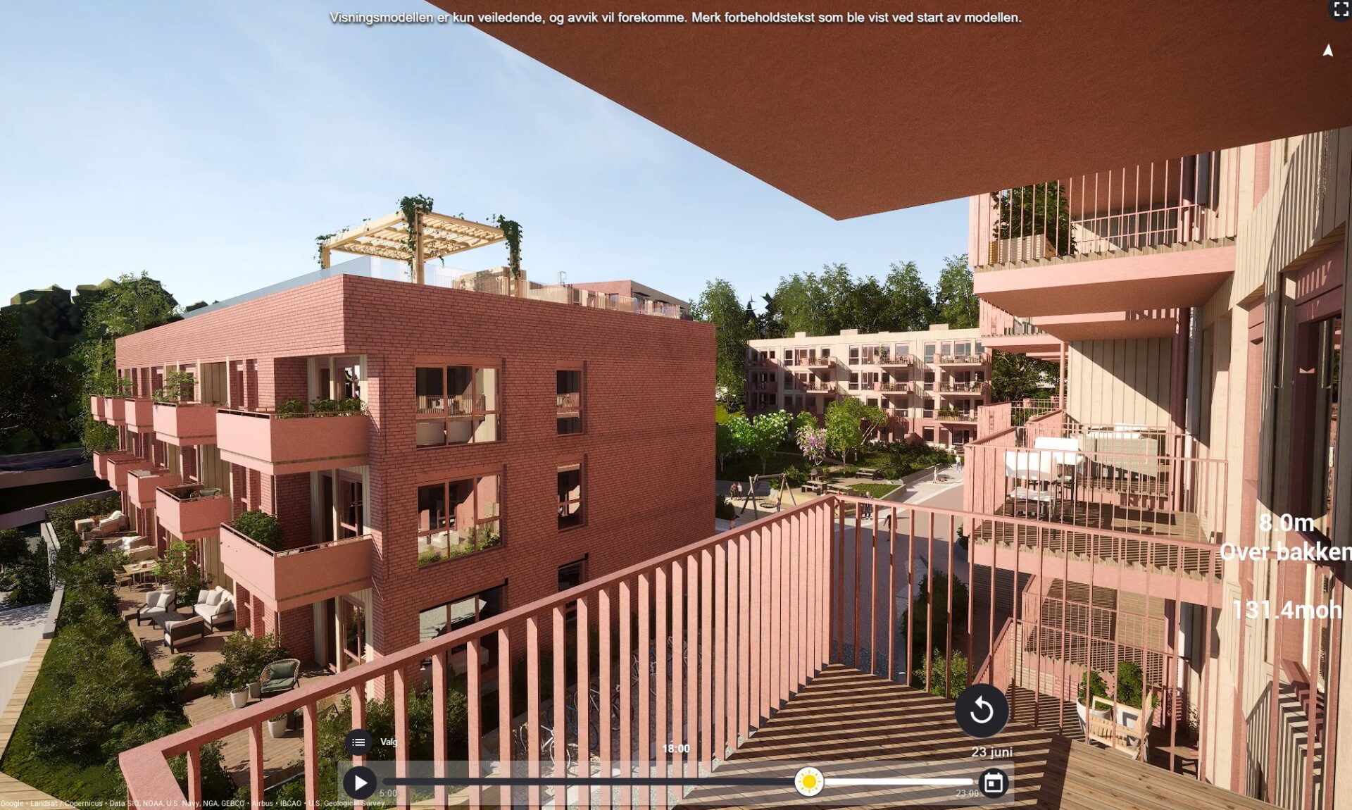 Utbygger forbeholder seg også retten til å bestemme endelig utforming av utomhusarealer, fellesarealer og materialvalg i og på bygningene.