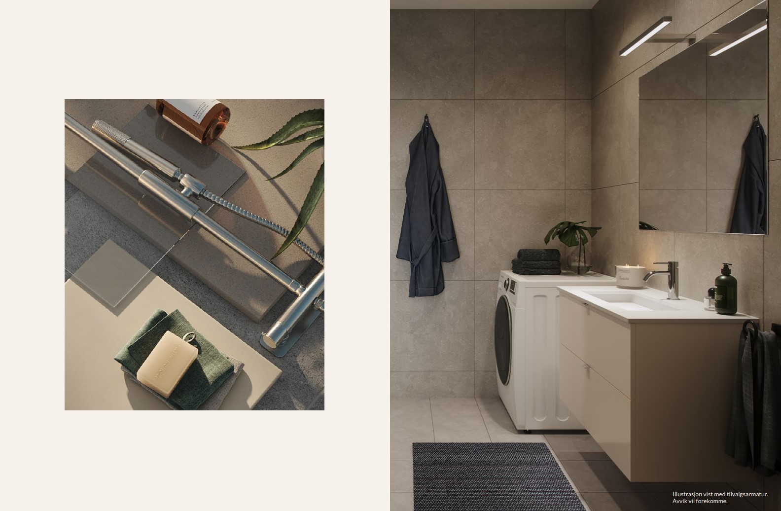 Det samme gjelder garderobeinnredning i entré og på soverom, vaskemaskin på bad og stiplede løsninger. Forslagene er kun av illustrativ karakter og ment som eksempler.