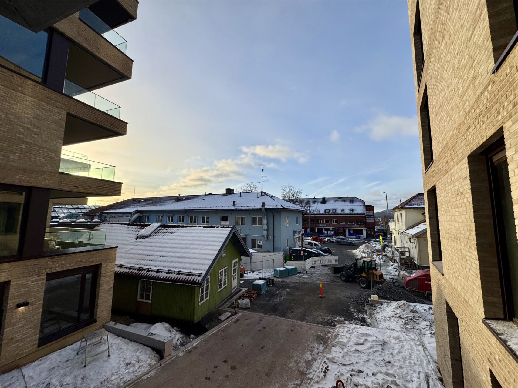Vest for prosjektet felt A9 gnr. 11 bnr. 66 og gnr. 32 bnr. 627 ligger i dag et næringsbygg. Eier har søkt om oppføring av et kombinert nærings-/leilighetsbygg på 4+1 etasjer, se sak på saksinnsyn.