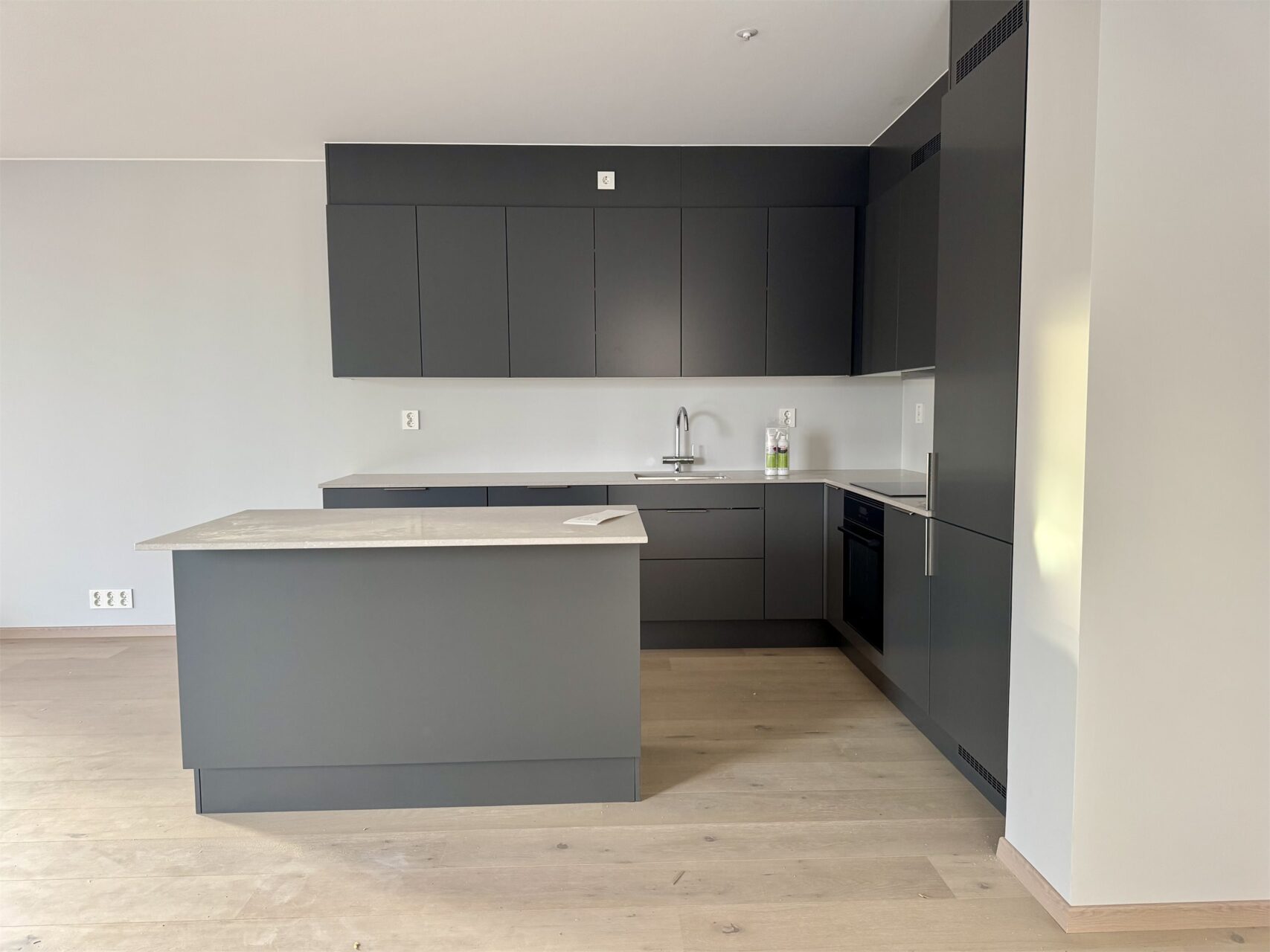 Kjøkkenfronter/-dekksider/-foringer: HTH Focus, lakkfarge: Koksgrå (NCS S7500N).