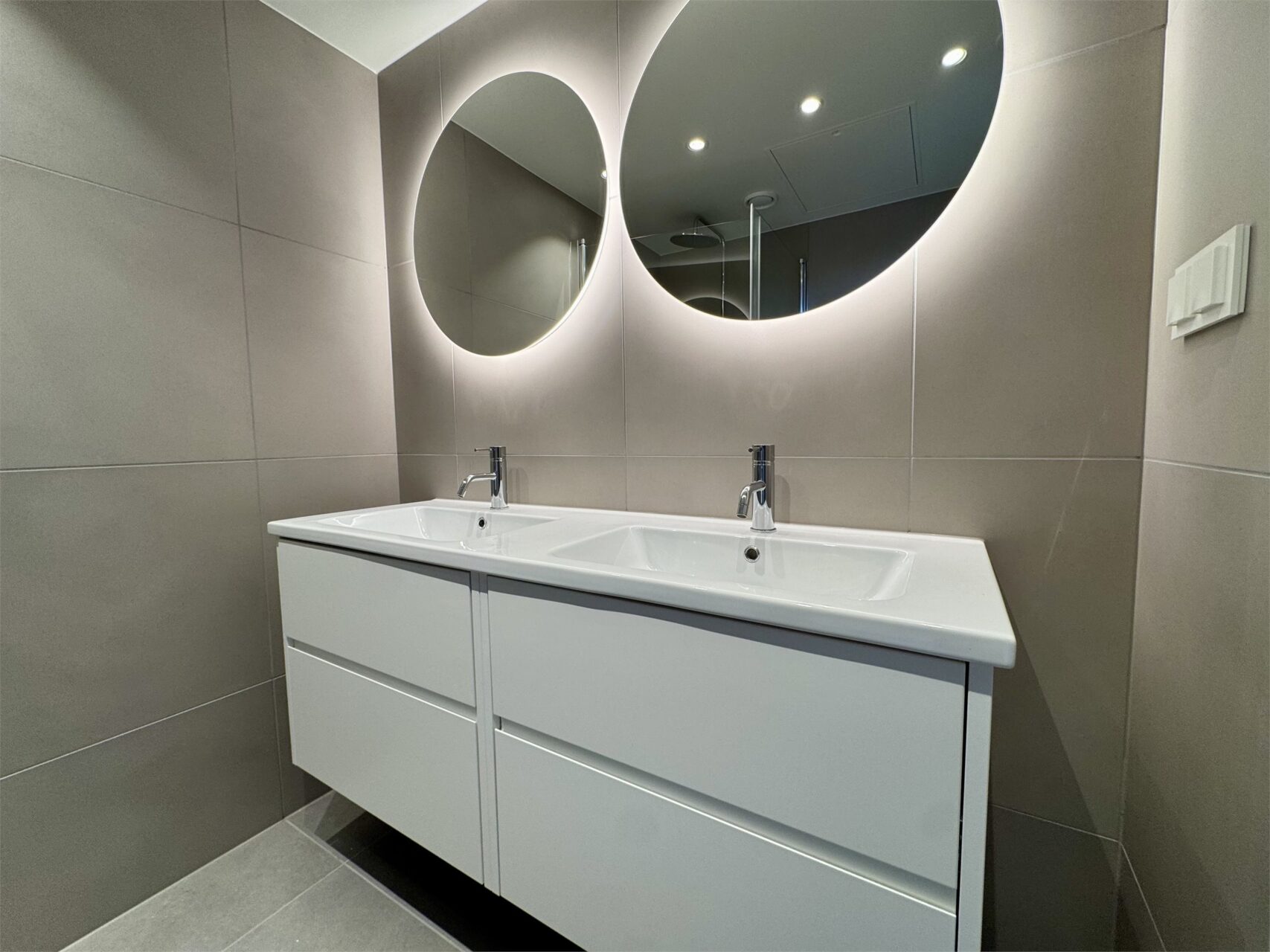 I entré leveres det LED downlights med dimmer. Downlights i gang tilbys som tilvalg. Antall etter størrelse på entre (minimum 2 stk)