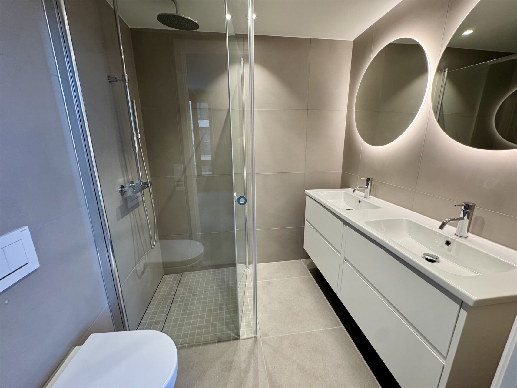 Gulvflis, bad: Marazzi Terratech, matt, 600mm x 600mm, 50mm x 50mm i dusjsone, farge: Polvere