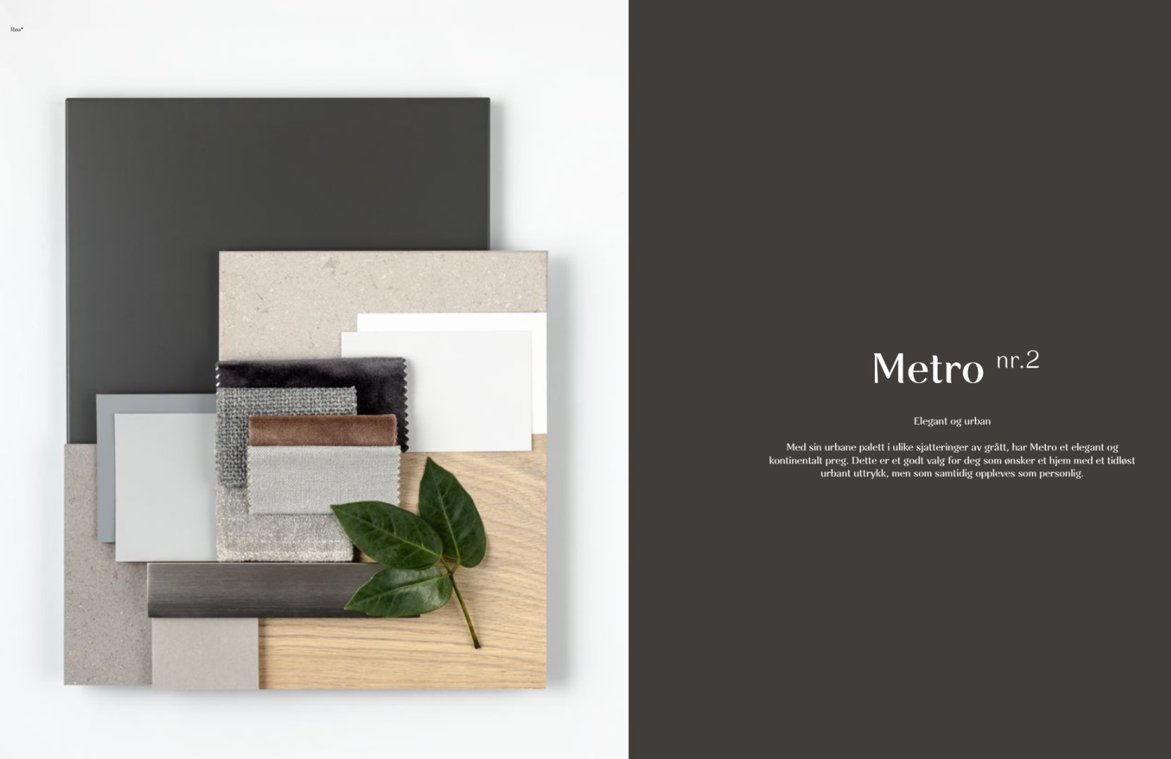 Denne leilgheten leveres i konseptet Metro – Elegant og Urban. Konseptet er utarbeidet av Lund+Slaatto Arkitekter. Med sin urbane palett i ulike sjatteringer av grått, har Metro et elegant og kontinentalt preg. Dette er et godt valg for deg som ønsker et hjem med et tidløst urbant uttrykk, men som samtidig oppleves som personlig. For å skape den gode helheten er alle materialer og løsninger levert av anerkjente produsenter innenfor sine spesialområder. Fra kjøkkeninnredningen fra HTH via kranene fra Tapwell til Marazzi-flisene på badet er det håndplukket produkter som sikrer høy kvalitet i alle ledd.